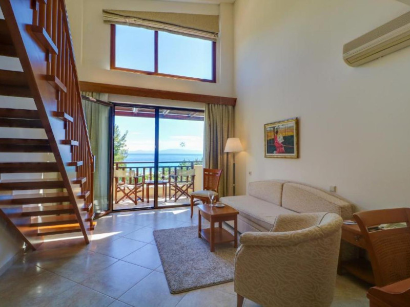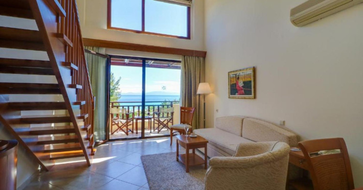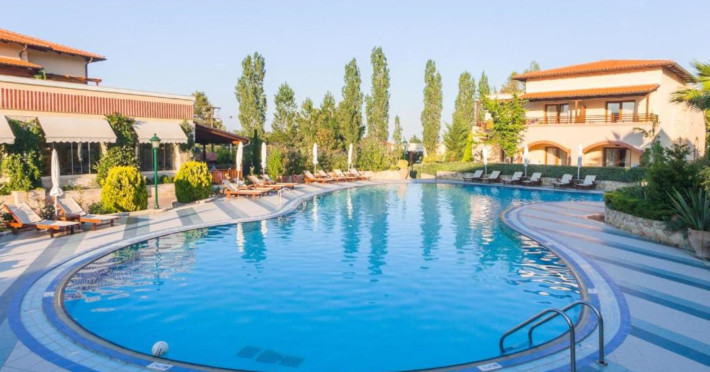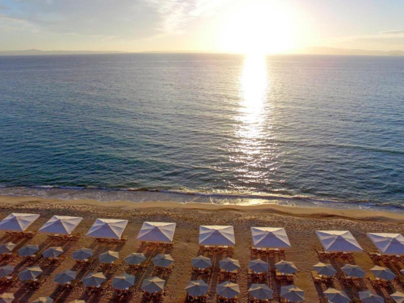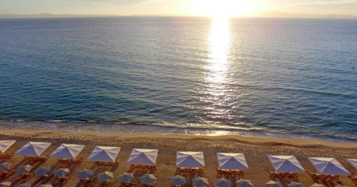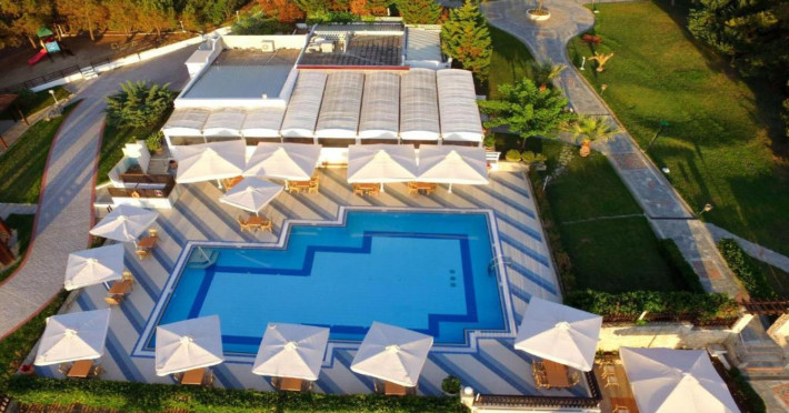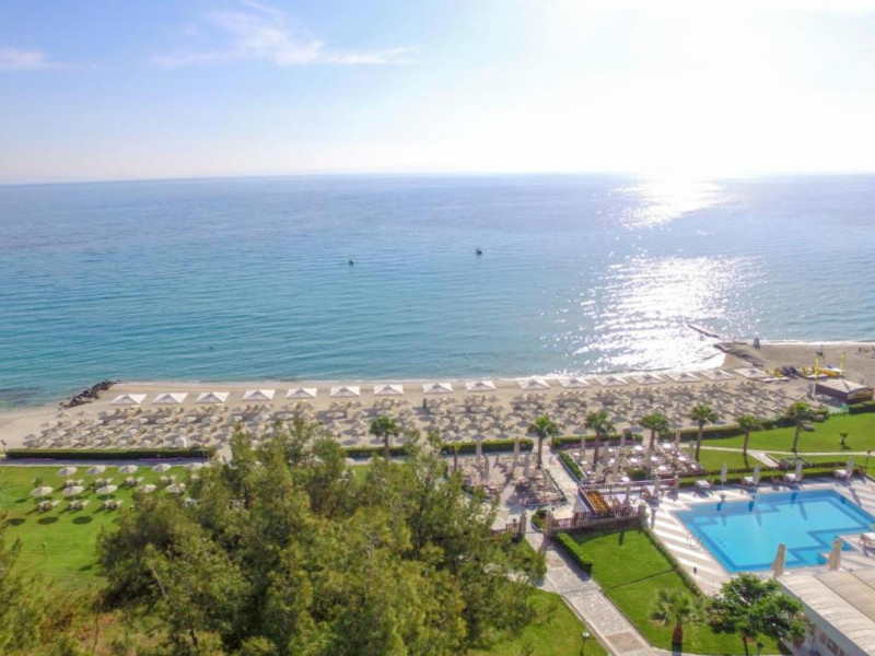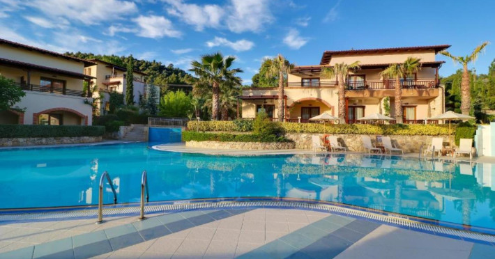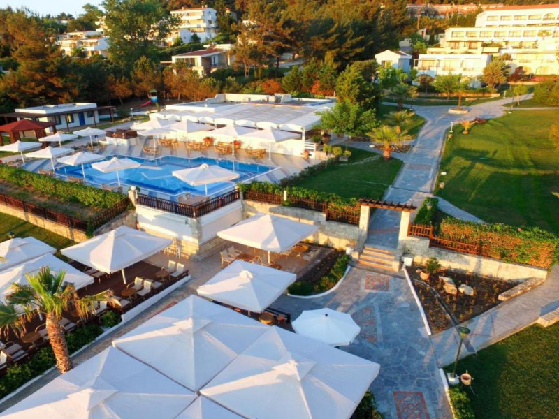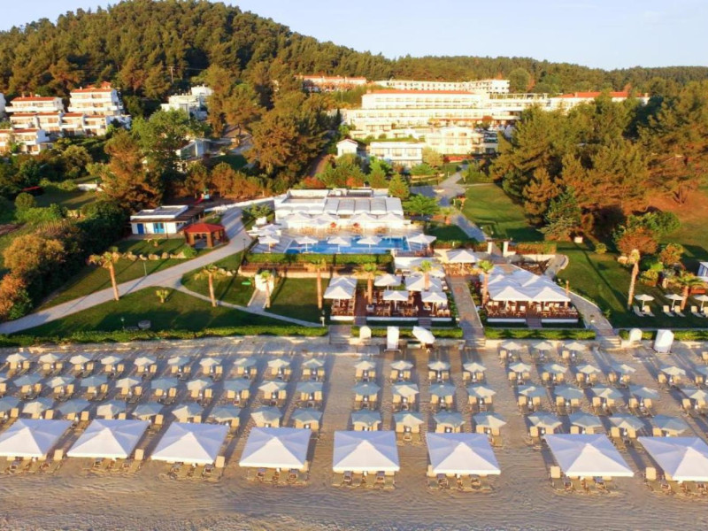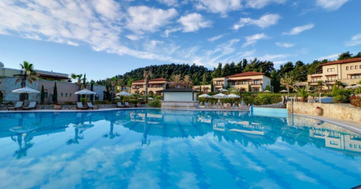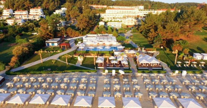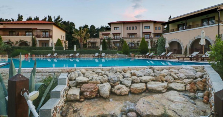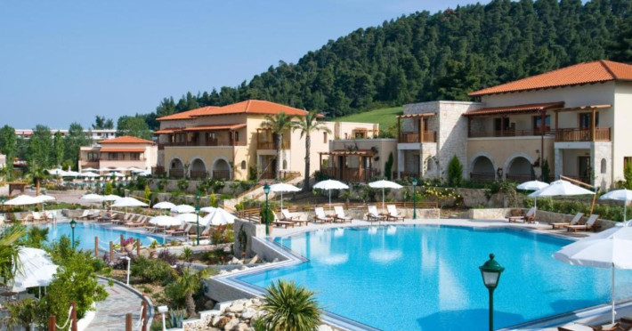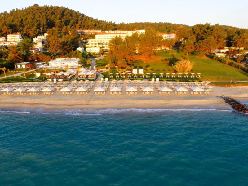 Aegean Melathron is a luxury, 5-Star hotel and a member of the Aegean Star Hotels Group. It is situated in the Peninsula of Cassandra, at Chalkidiki, which is a steady centre of attraction for thousands of visitors both from Greece and abroad. It is 80 km away from Thessaloniki's "Macedonia" Airport and 3 km from the bustling town of Kallithea, which offers many attractive options for entertainment. From Thessaloniki, you can reach the hotel either by taxi or public bus The location is breathtaking and offers contrasting natural landscapes of unique beauty. The hotel is surrounded by a verdant wooded area reaching all the way down to a golden beach and the crystal-clear blue waters of the Gulf of Toroni.