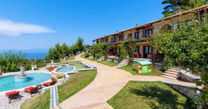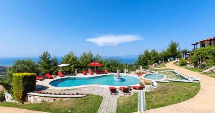 Akritas Ef Zin Villas & Suites is a complex designed to serve those who desire carefree holidays in a well-tended, hospitable environment. The location is an idyllic spot on the verdant peninsula, with easy access to enchanting Kassandra beaches and just 6 km from the Agia Paraskevi Spa. Surrounded by lush vegetation, languishing under plane and pine canopies, the complex welcomes visitors who wish to escape every-day routine and enter a world of relaxation and pleasure. This pleasant and serene site includes three masterfully constructed residential complexes, affording panoramic views of the Toronaios Gulf. All residences (2 private villas, 13 luxury villas, 12 suites) overlook the gardens, the pools and, of course, the endless blue of the sea and the sky.