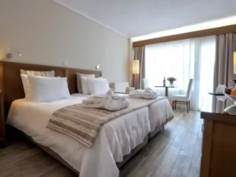 Mitsis Alexander the Great offers a range of comfortable accommodations, from cozy single rooms to spacious suites with sea or garden views. Rooms feature modern amenities and furnished balconies. Guests enjoy daily cleaning services, eco-friendly bathroom amenities, and optional laundry services. The hotel provides a relaxing atmosphere with stunning vistas and convenient facilities such as 24-hour reception and free parking.