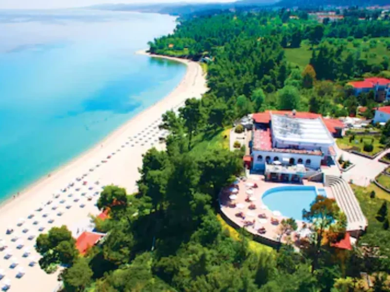 Perched on a pinewood hill with breathtaking views of Kriopigi's sandy shores, Mitsis Alexander the Great offers a serene retreat in the heart of Halkidiki's Kassandra peninsula. Enjoy a large swimming pool, a floodlit tennis court, and indulge in delicious local cuisine. The hotel's intimate atmosphere and friendly staff ensure a memorable holiday experience.