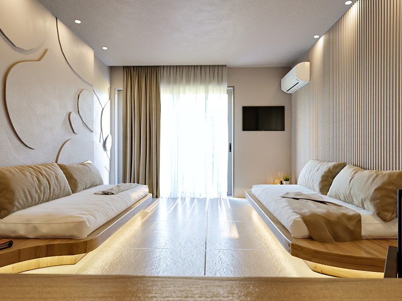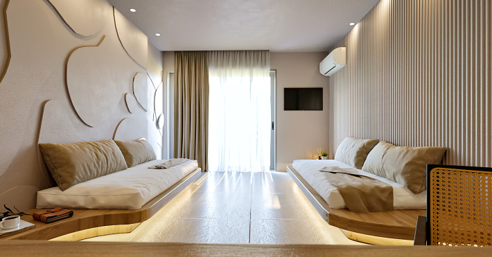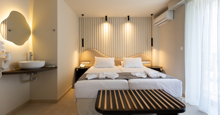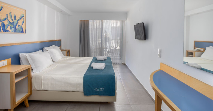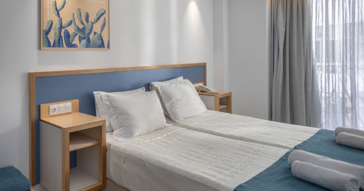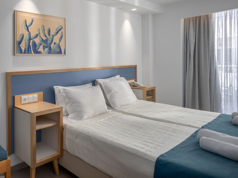 Alia Beach is a captivating hotel complex in Hersonissos, offering a blend of attractive rooms and suites. Its privileged position in the seaside area of Hersonissos makes it the ideal place for couples and families to vacation. Its location on the most advantageous spot of Hersonissos Bay is unparalleled. It is right in front of the endless Cretan Sea and just three minutes from the town, medical center, and public transportation. Alia Beach Hotel offers easy access to the finest parts of Crete. The hotel's unbeatable location will satisfy even the most demanding travelers.