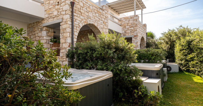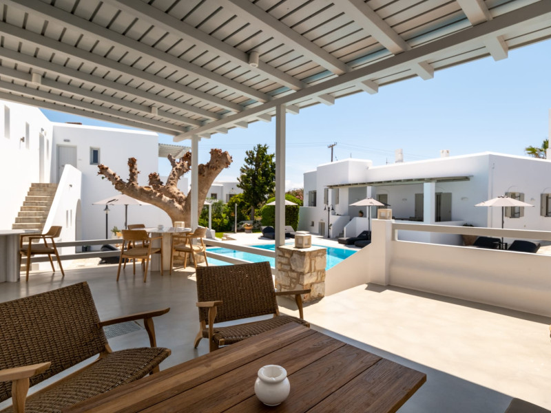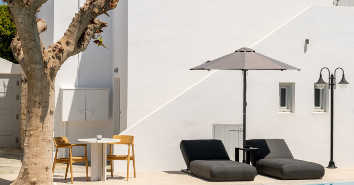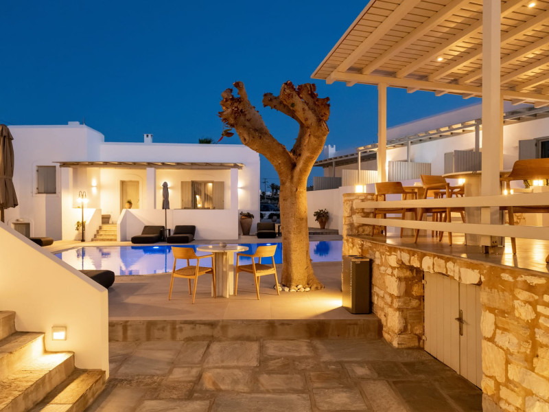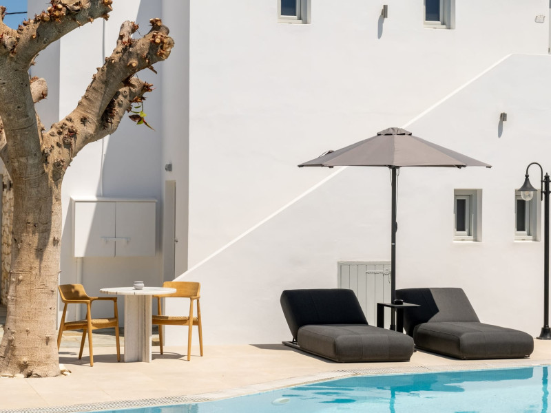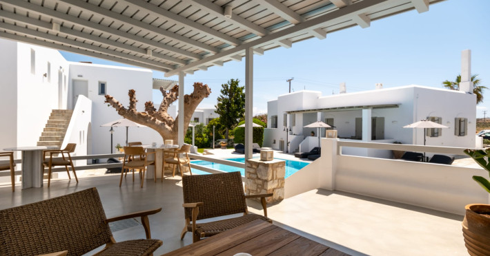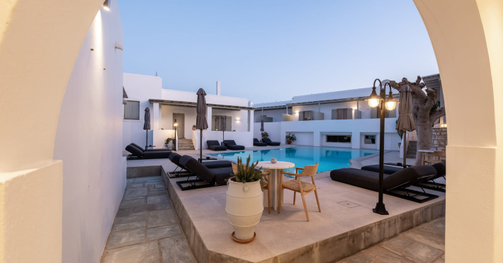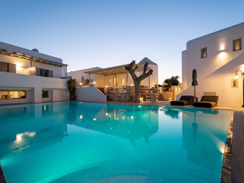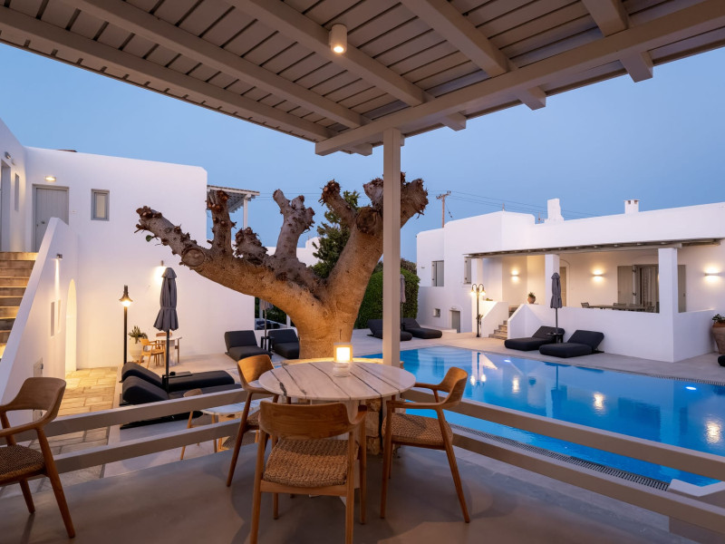 Welcome to Anemomylos Residence and to Naoussa, the most gorgeous village of Paros and one of the nicest villages of Cyclades, worldwide known for the simplicity of its typical Cycladic architecture and its picturesque fishing port. Our complex is a family-run unit consisting of 15 apartments, superior double rooms and superior suites very well attentive and distinguished by their Cycladic architecture and decoration. The spacious apartments, rooms and suites combined with the services we offer are the guarantees for high-quality, comfortable and carefree vacation.The excellent location of Anemomylos Residence and its outer space that gives the traveller a sense of an inner courtyard of a summer house, sets us apart from most of accommodations in Naoussa. The pool area surrounded by beautiful trees and flowers will make you feel that you are in a true private oasis so close to the village center.The Thirty Years' experience in the tourism sector, the immediacy and discretion of us and our staff will make you feel so cozy like home.Our apartments, rooms and suites can accommodate from 2 to 5 persons, perfect accommodation for both families and couples.Anemomylos consists the ideal basis for exploring the island and swim into its crystal clear waters.