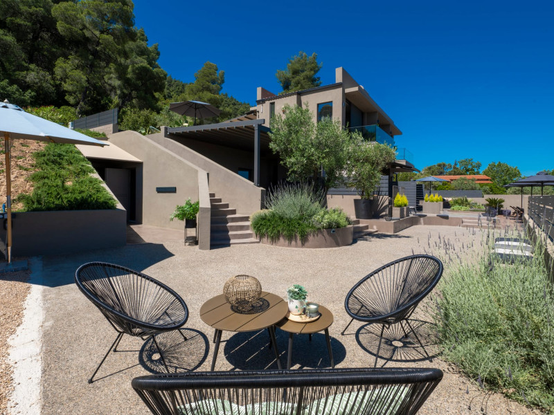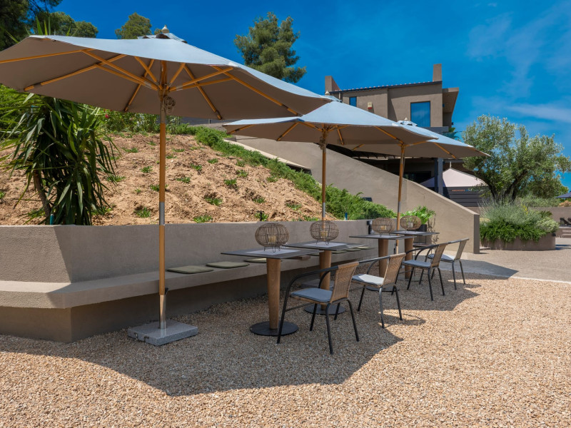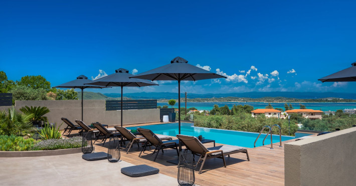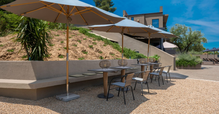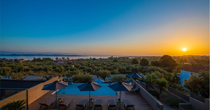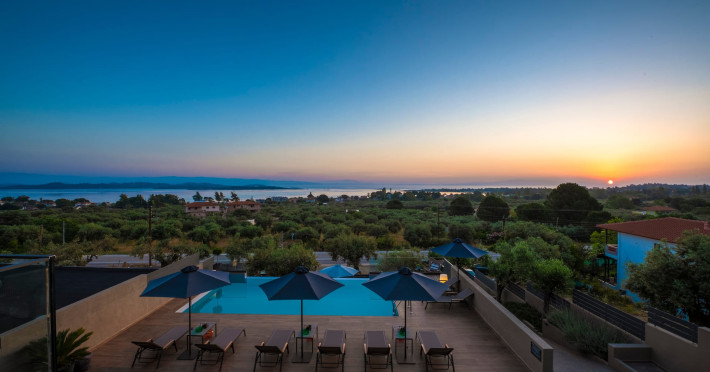 environment. The earthly hues blend in with the jade and blue waters, offering exceptional views in a peaceful and comfortable environment.