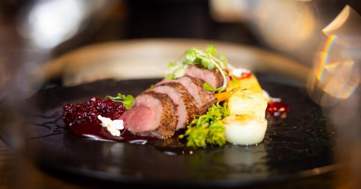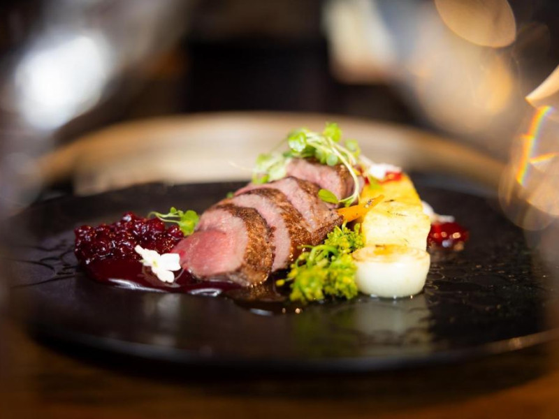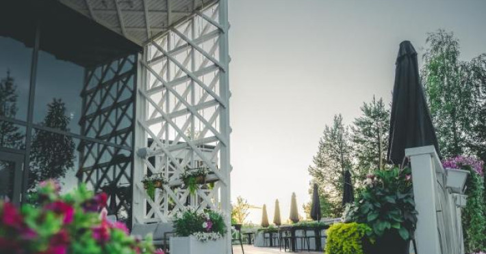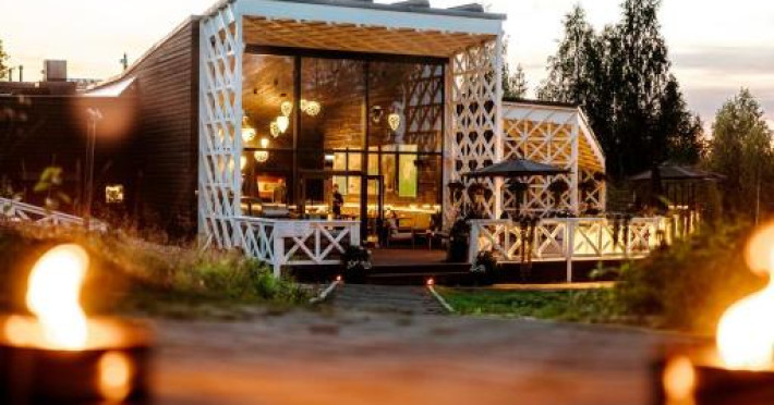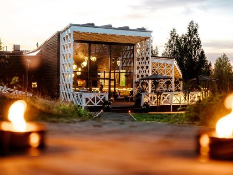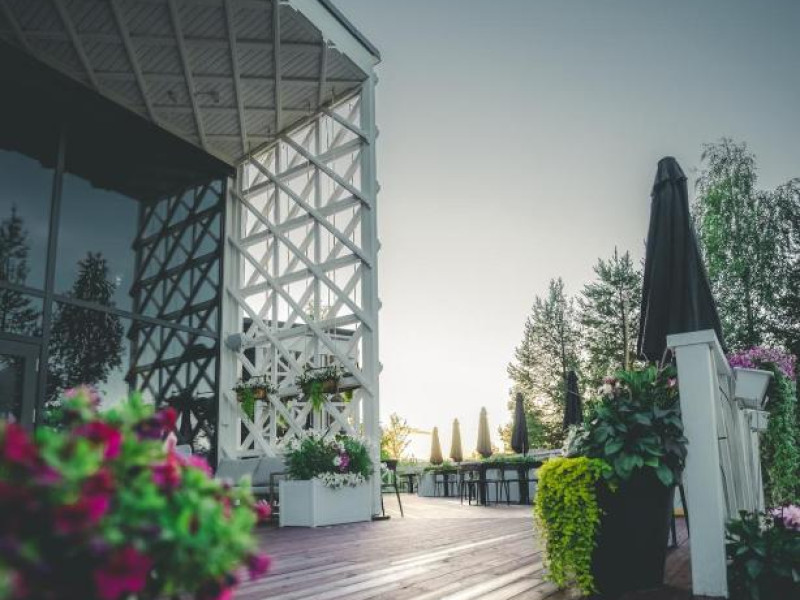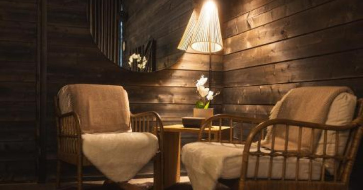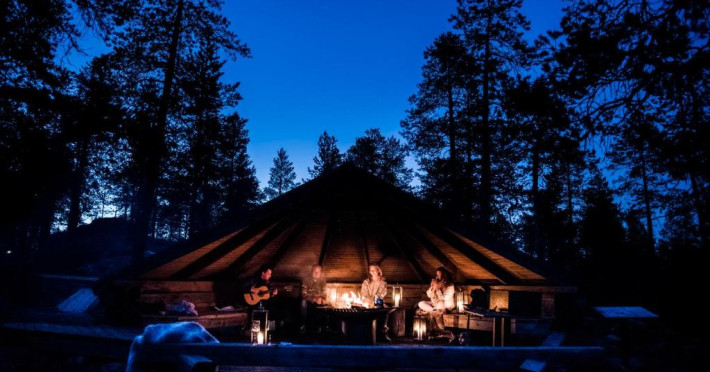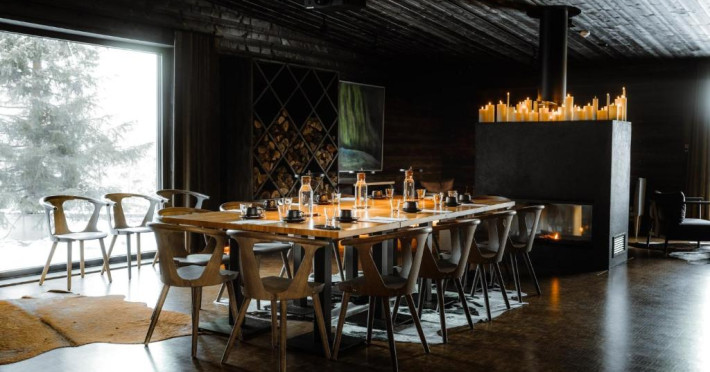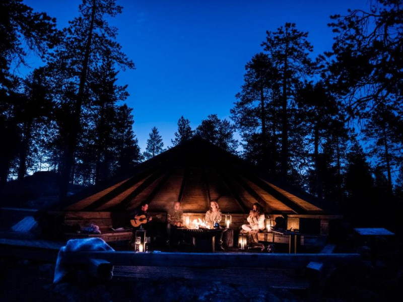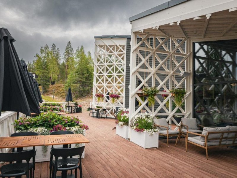 Situat la doar 3 km de Satul lui Moș Crăciun, hotelul dispune de un restaurant à la carte care servește specialități nordice rafinate, preparate din ingrediente locale. Rakas Restaurant & Bar oferă o atmosferă intimă cu vedere spre pădure.