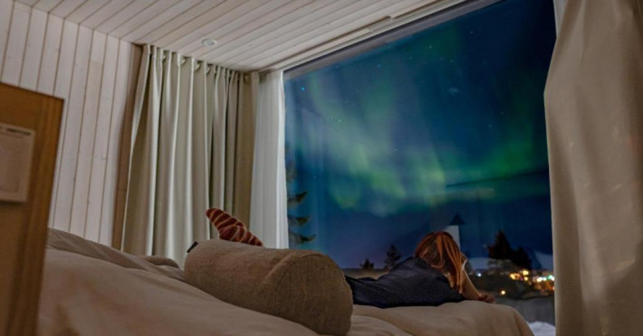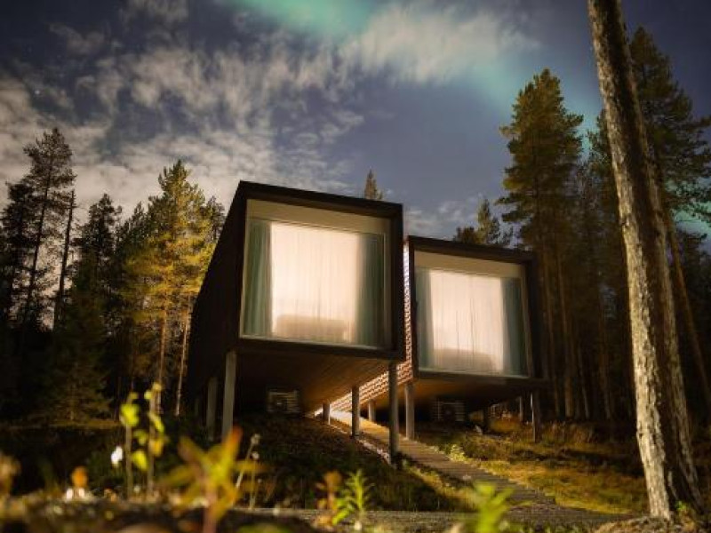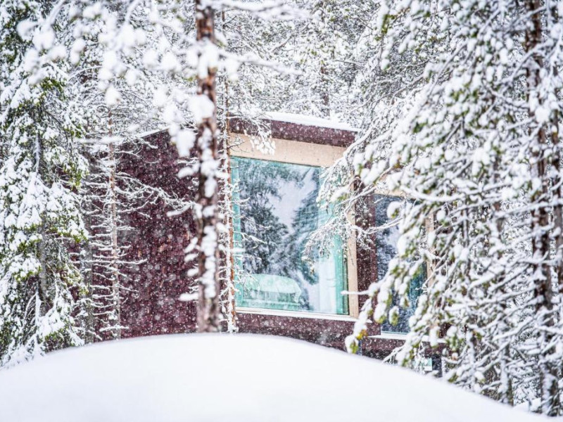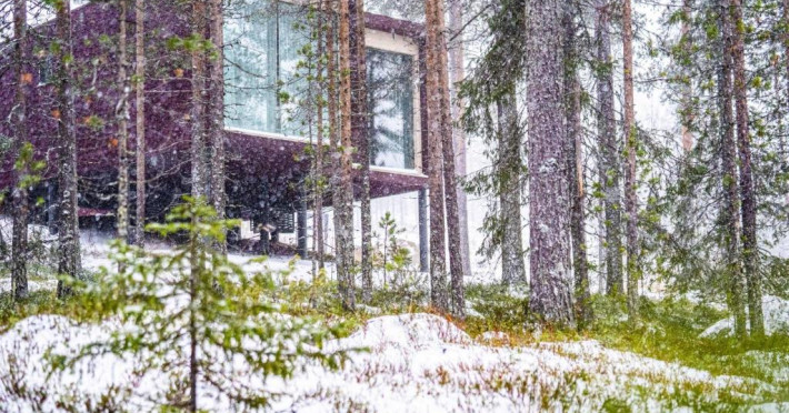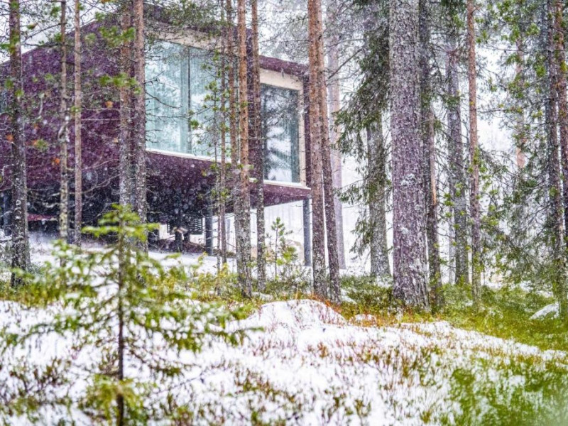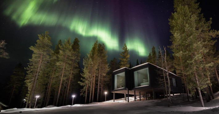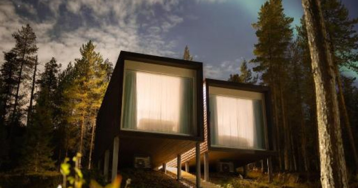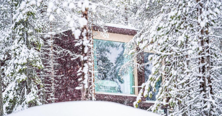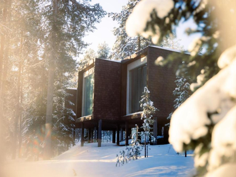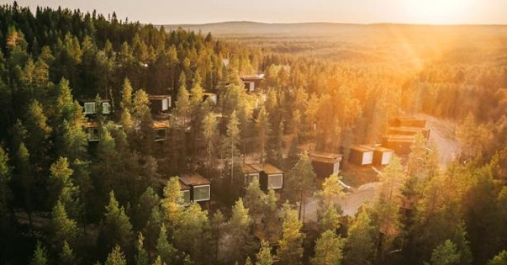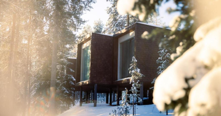 Arctic TreeHouse Hotel din Rovaniemi oferă o experiență unică de cazare in case moderne suspendate in copaci, cu vedere panoramică spre pădurea laponă prin pereții de sticlă de la podea pană la tavan.