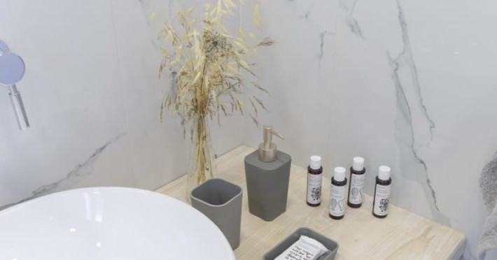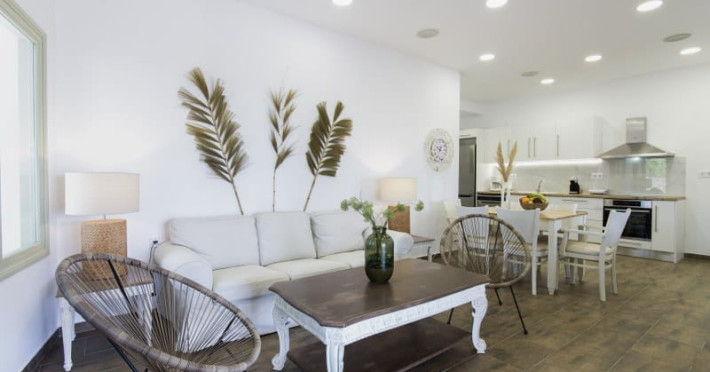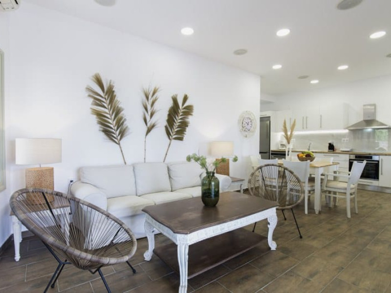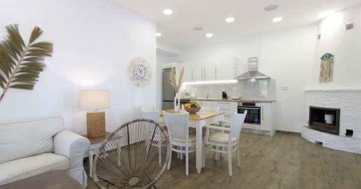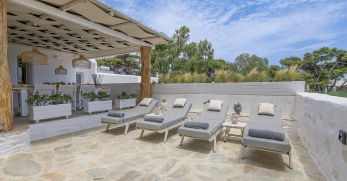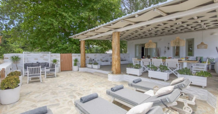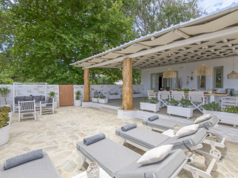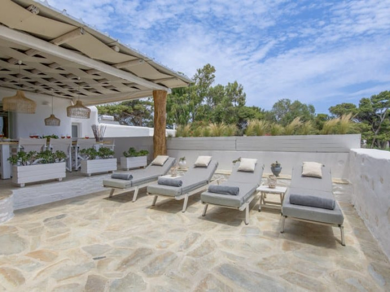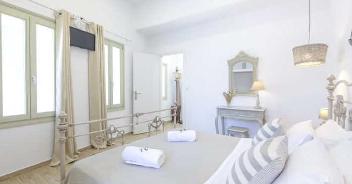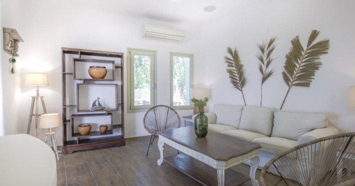 Arethousa House consists of a living room-kitchen (single space), 3 bedrooms, 2 bathrooms and a large patio area.