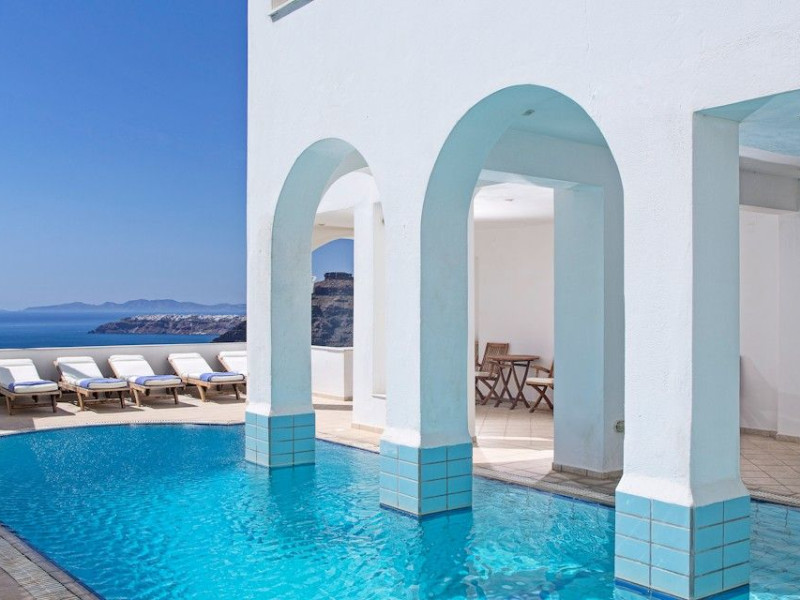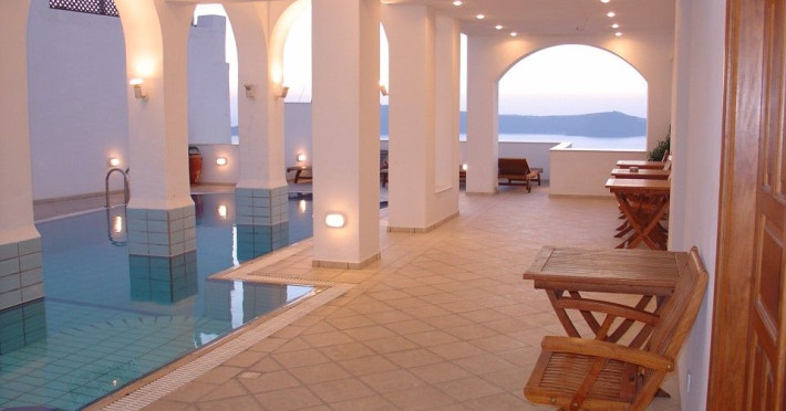 is located in the best part and center of Fira, with breathtaking view of the Caldera, the volcanoes and the Aegean Sea, combines traditional Cycladic architecture with modern facilities.The elegantly decorated rooms by the famous Greek decorator KOSTAS STAIKOS, are equipped with modern amenities ensuring comfort. Most of the rooms have a truly unique view of the Caldera, the volcanoes and the Aegean Sea (West view) and some of the rooms have view to the fields, the villages, the small mountain of Profis Elias and the sea (East view).Atlantis provides free wireless internet connection, 24 hours front desk service, a bar, a living room, a breakfast room, a TV-Meeting room and a pool with jacuzzi in one of its corners.The central location of the ATLANTIS, very close to the Archaeological Museum, the bus and taxi stations, the travel agencies, the banks, the shops, the restaurants and tavernas, makes it the perfect base to explore the island.A car or taxi, will drive you in front of the hotel's entrance. There is a small free public parking outside the hotel and 2 more in a distance of approx. 200 meters.The hotel belongs to the shipowner's family of LOULA & EVAGELOS NOMIKOS who donated to the island the CABLE CAR, as well as the plot of the new Museum, the equipment of the old hospital, a modern garbage truck, and an excavator.