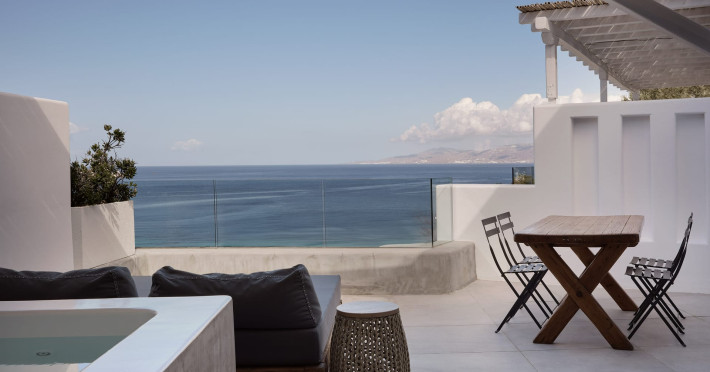 Just a stone’s throw from the unique Mykonian Windmills and the popular Little Venice, BOHeME is a Mykonos Town 5* Boutique Hotel with 27 luxurious suites, all of them having a unique sunset view to the island of Delos and panoramic views of the Aegean Sea.The newly renovated Boheme is conveniently located in the heart of mesmerizing Mykonos (just 5 minutes’ walk from the center of Mykonos Town), in an ideal location if you want to scroll down the picturesque alleys surrounded by whitewashed local houses, boutiques, bars and restaurants.At the Bilo Restaurant, nestled by the pool, apart from the views, you can savor an array of authentic Greek dishes, each one made with love and locally sourced ingredients.Experience ultimate relaxation in our serene Treatments Room overlooking the sea and sunset, where our massage therapist provides exceptional care and rejuvenating therapies.In Boheme's garden, surrounded by lemon trees and olive trees, you can enjoy cooking classes that will make you a Greek cuisine master.As the sun sets over the Aegean Sea, you can enjoy a panoramic sunset view from your suite or by the pool with a carefully crafted cocktail.Due to the particular construction of the hotel on a cliff and for safety reasons, children below the age of 13 are not allowed.