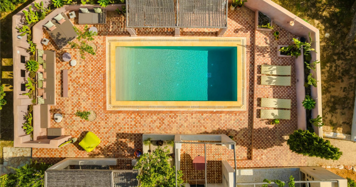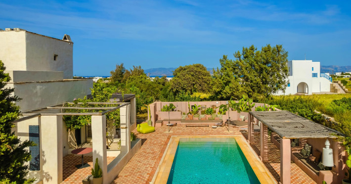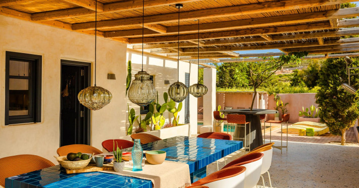 Casa Miel spans an impressive 343 square meters in the serene area of Ampelas, offering a seamless blend of traditional charm and contemporary luxury. Comprised of two separate buildings over two levels, the villa features a total of six bedrooms and six and a half bathrooms, ensuring ample space for you and your esteemed guests.