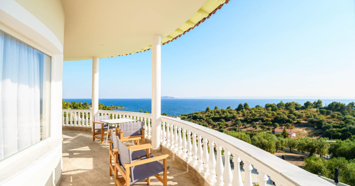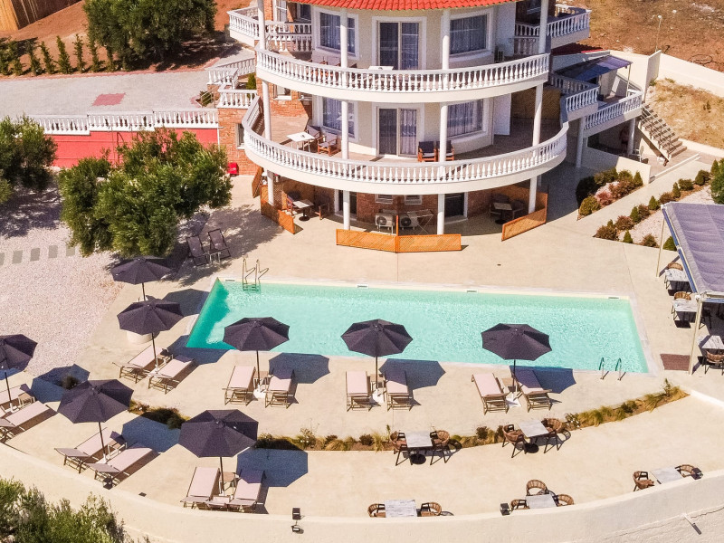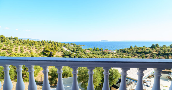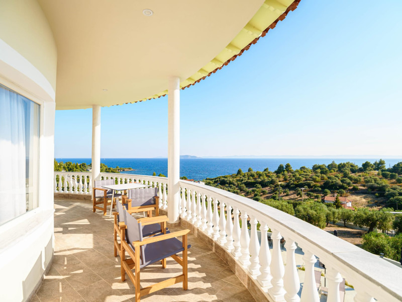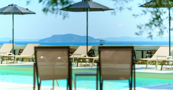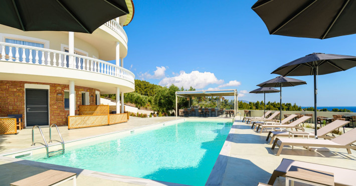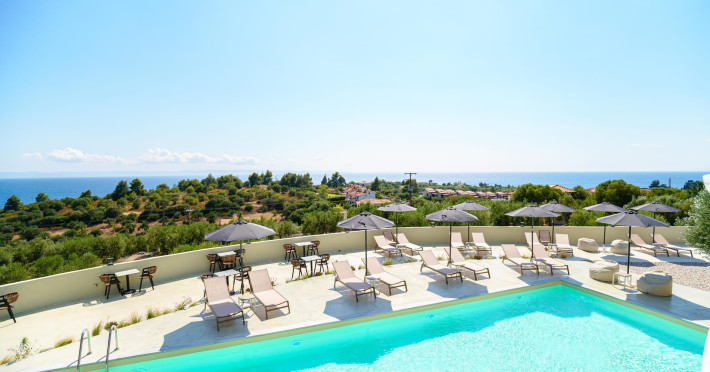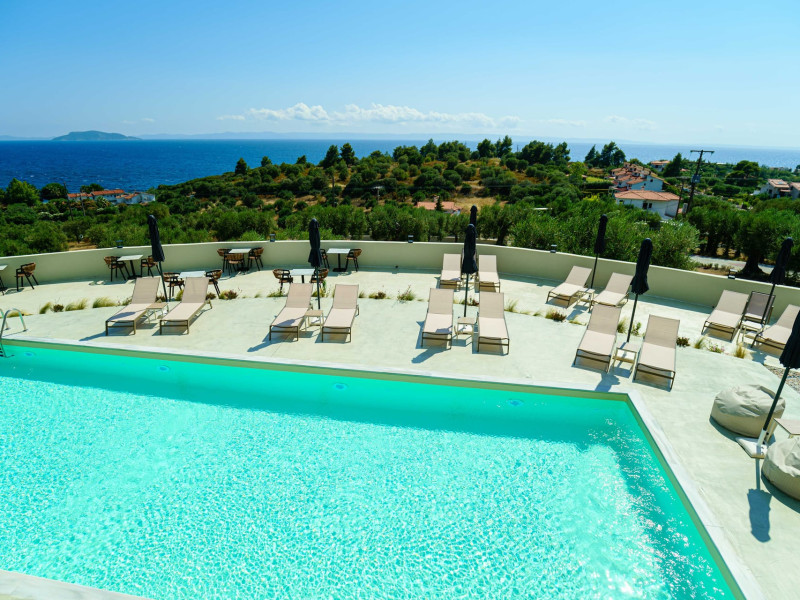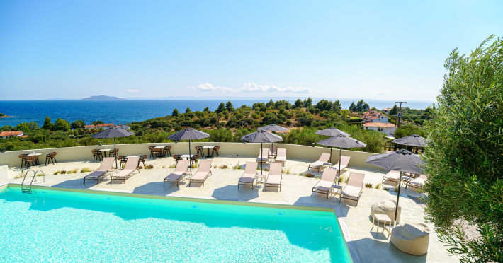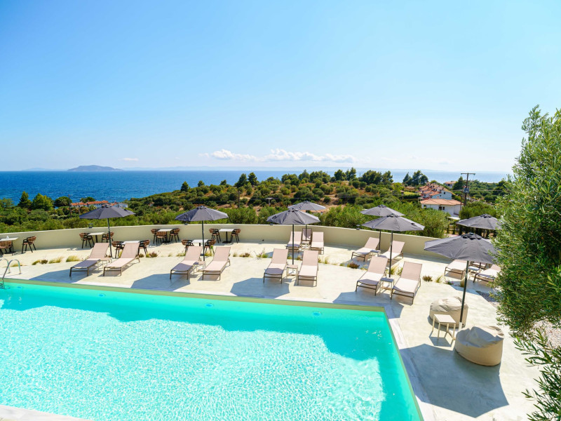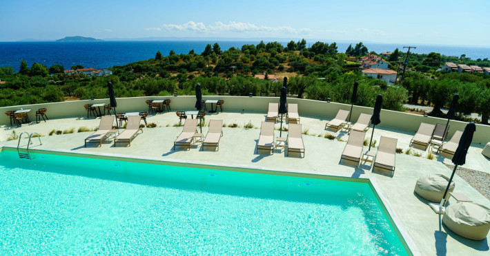 Casa Panorama is an adults-only property set in the peaceful landscape of Akti Elias, Sithonia, in Halkidiki. Surrounded by lush nature and offering panoramic views of the Aegean Sea, it provides a serene setting for guests aged 16 and over. The accommodation features modern, thoughtfully designed suites with private balconies and a calm, contemporary aesthetic. An inviting outdoor pool area creates the perfect spot to unwind, while the nearby coastline offers access to some of the region’s most beautiful beaches, including Lagomandra and Nikiti. The surrounding environment is quiet and unspoiled, ideal for those looking to relax and enjoy the slower pace of life. With its tranquil atmosphere, elegant design, and natural setting, Casa Panorama is a place for adults to disconnect, recharge, and take in the timeless beauty of Sithonia.
