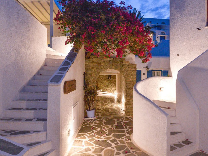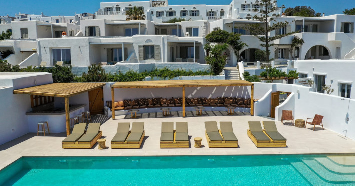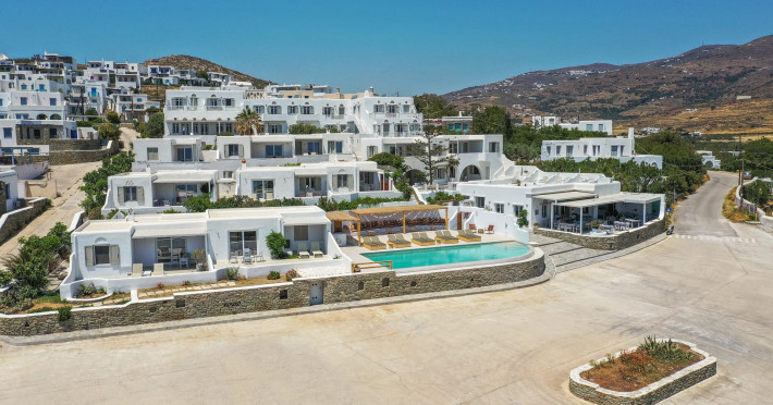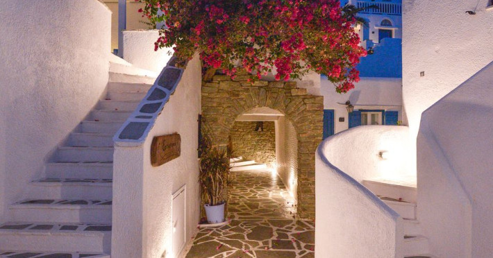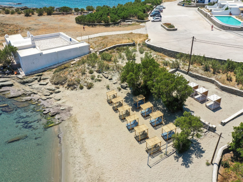 Just a few meters from one of the most beautiful beaches in Tinos and with a view over the eye-catching, white-washed chapel of Agios Sostis, the Cavos complex is a small white village built in traditional style, offering a true breath of relaxation and enjoyment for your vacation.