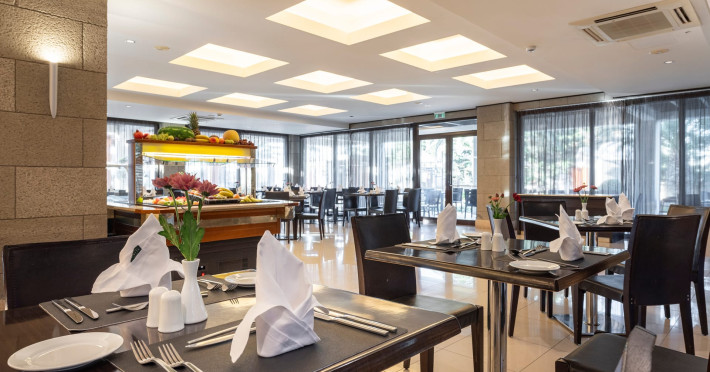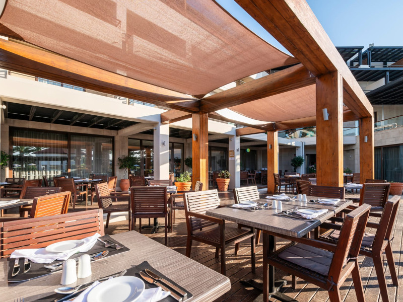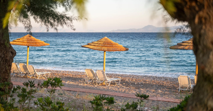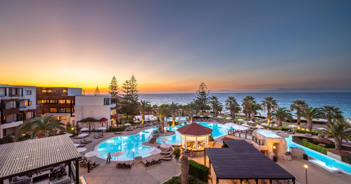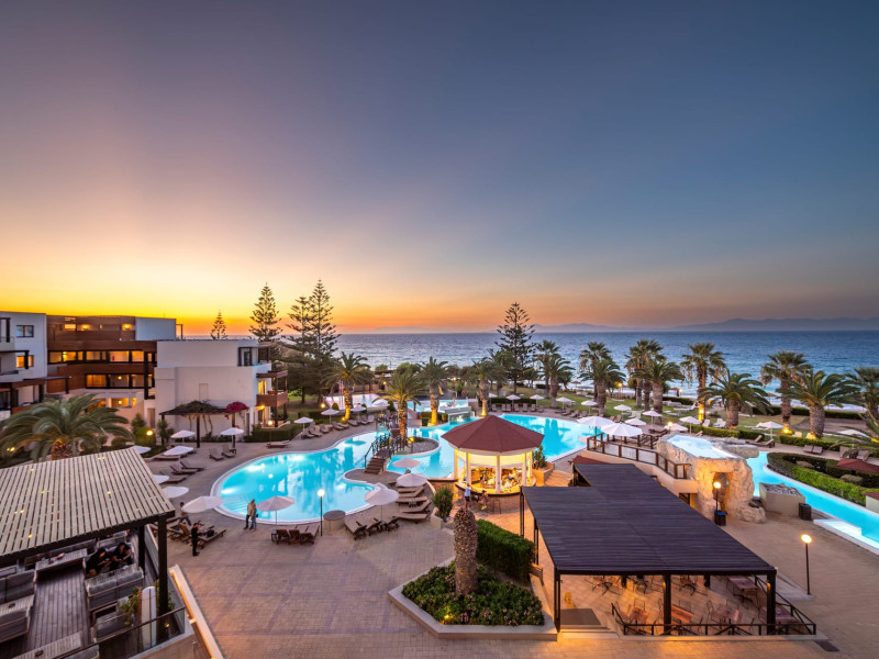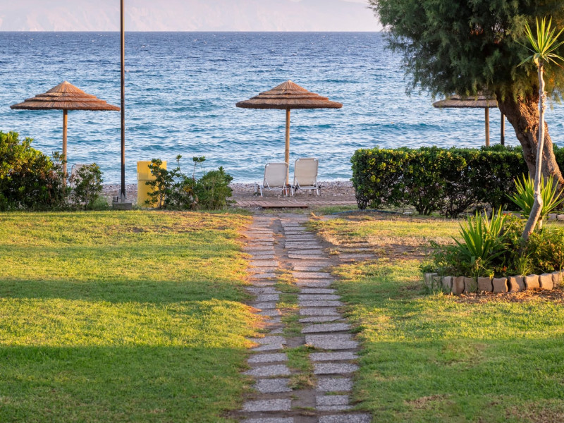 Welcome to D' Andrea Mare Beach Hotel in RhodesRhodes Hotel D' Andrea Mare situated right on the magnificent beach of Ixia, 9.5 km from the legendary city of Rhodes and 5.5 km from the Diagoras airport of Rhodes island, the D' Andrea Mare Hotel in Rhodes is the ideal choice for those who would like to combine the Aegean Blue with the cooling breeze of the west coast. It is practically situated on the beach, offering you the chance to spend unforgettable vacations under the splendid Greek sun. A real paradise near the sea, makes you escape from the daily routine.The Rhodes Hotel D' Andrea Mare, combines old medieval city elements with contemporary architectural details. Sitting areas of the lobby create a harmony with the interaction of different elements. Small lakes with pebbles surround the restaurant, giving a sense of a floating building.