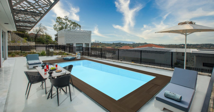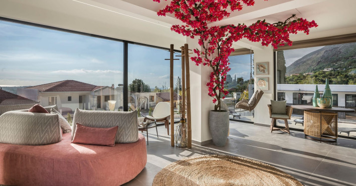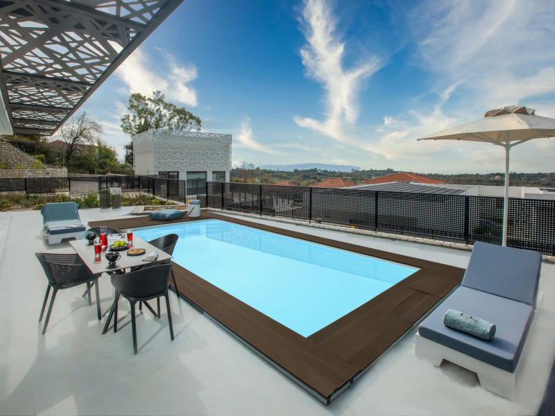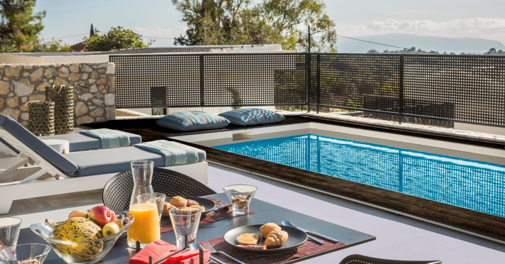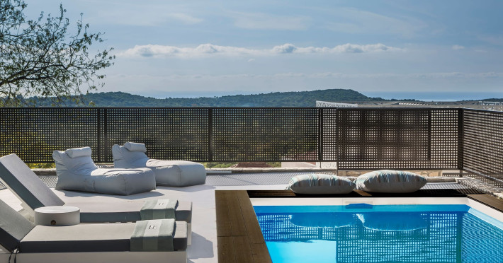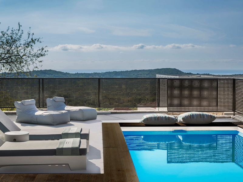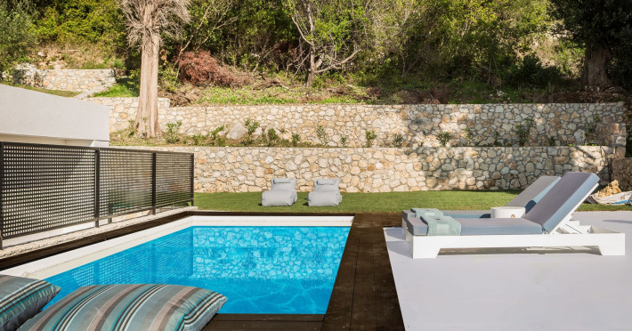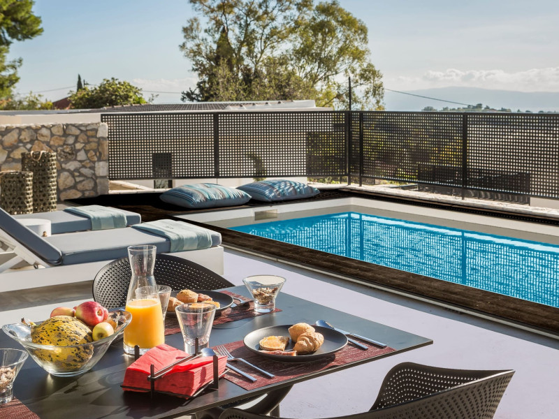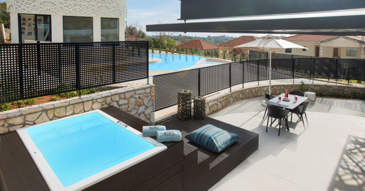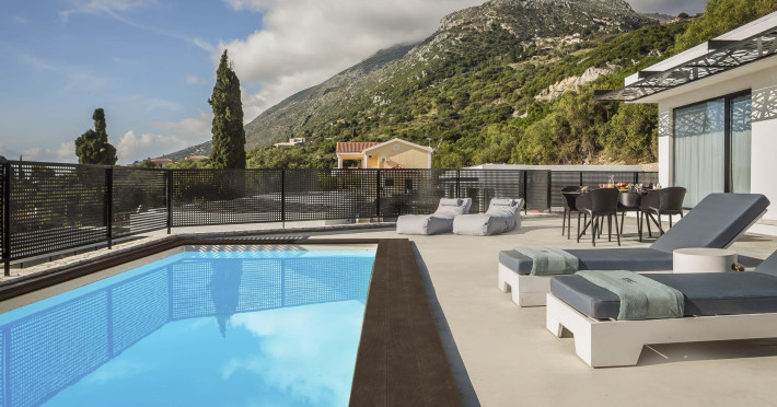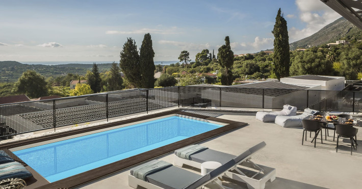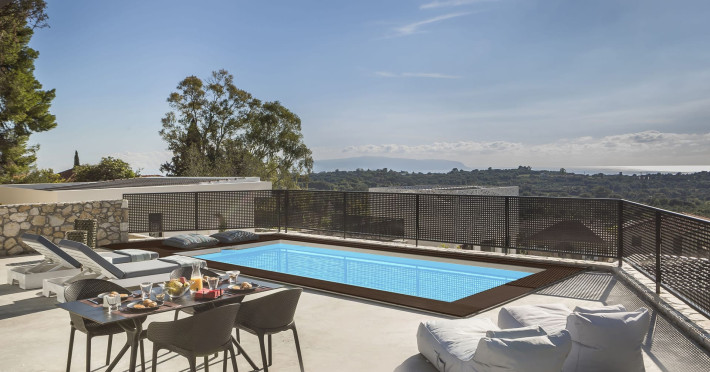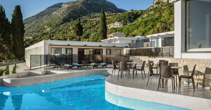 WELCOME TO EROLIDAE VILLASImmerse yourself in the beauty of the Ionian Sea and experience the best Greek island livingwith a private and luxurious stay at Erolidae Villas in Kefalonia.Built on a slope of Ainos, under the shadow of the mountain, in front of the Ionian Sea, on the Land of Odysseus and Nymphs,with beaches coming out of a dream, turquoise waters and caves we offer you a journey of luxury Erolidae Villas, a complex of autonomous villas, situated in Chionata, offers a public pool, gardens and terraces.Guests staying at each villa have access to either a private pool or jacuzzi, a spacious living room and a fully equipped kitchen.Each villa comes with a flat-screen smart 43’’ TV and 2 bedrooms with 2 in-suite bathrooms. BE OUR GUEST