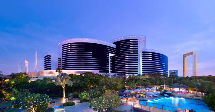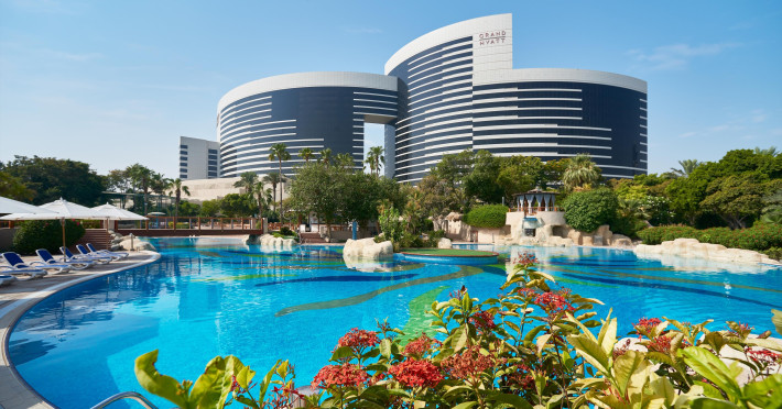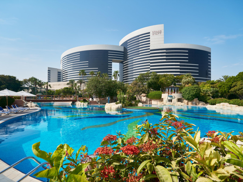 Grand Hyatt Dubai este situat in Bur Dubai si este amplasat intr-o gradina imensa verde. In apropiere veti gasi Dubai Creek si la cateva minute de mers pe jos de numeroase optiuni de cumparaturi, baruri, restaurante si multe alte activitati. La populara plaja de nisip La Mer se poate ajunge gratuit cu autobuzul de la hotel sau va puteti relaxa la una dintre piscinele hotelului. Hotelul este o alegere excelenta pentru a descoperi frumusetea Emiratelor Arabe Unite.