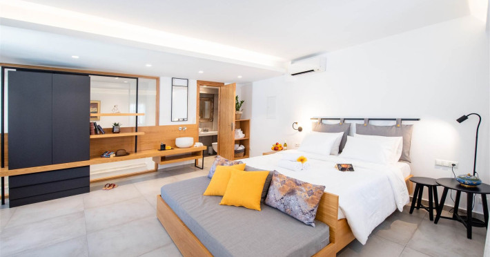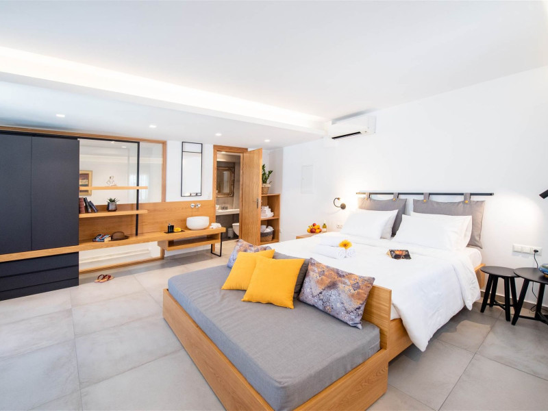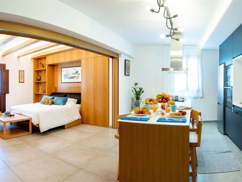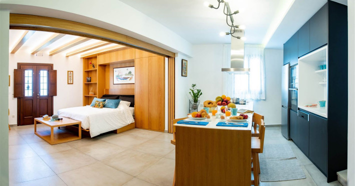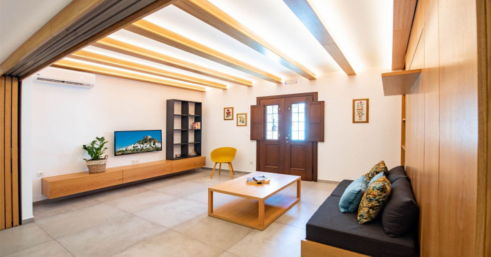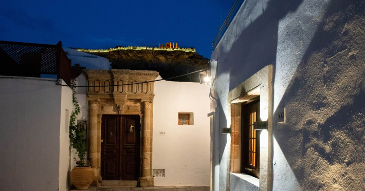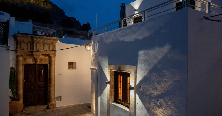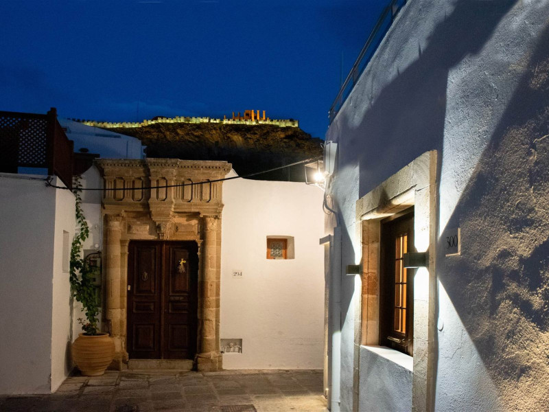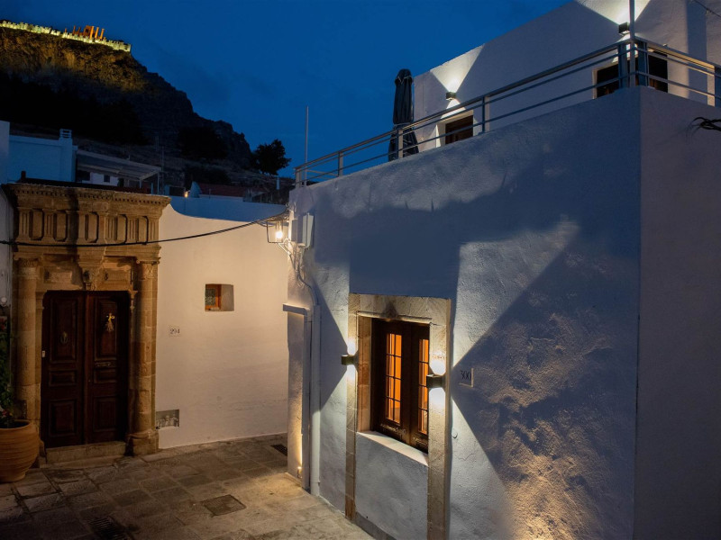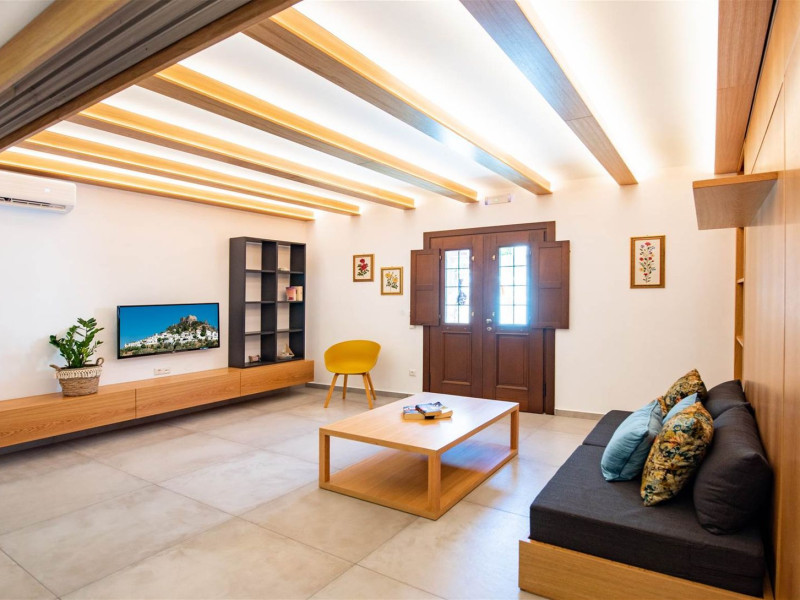 Located in the heart of 2500 year old Lindos village inLindos villa is a traditional yet modern two bedroom accommodation. The wooden furnishing gives cosiness while the brightness of the villa provides freshness. A two floor house with a sitting area/bedroom and the kitchen as well as the bathroom on the first floor and a bedroom with a bathroom on the second floor is perfect for up to four people. A balcony with a wonderful view of Lindos Acropolis adds to the charm of this accommodation. Surrounded by the bars, restaurants and shops this house is just 10 min walk from the St. Paul`s beach.The air-conditioned villa consists of 2 bedrooms, a living room, a fully equipped kitchen with a dishwasher and a kettle, and 2 bathrooms with a shower and a hairdryer. A flat-screen TV with satellite channels is provided.