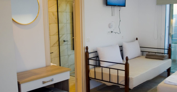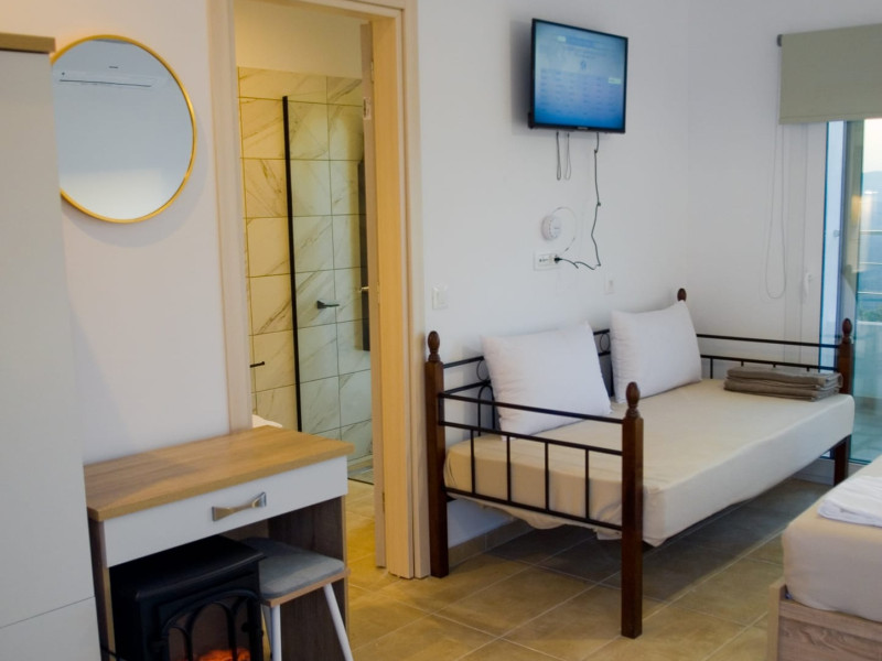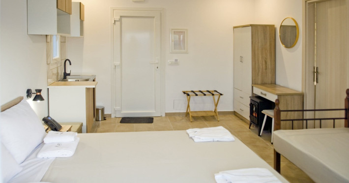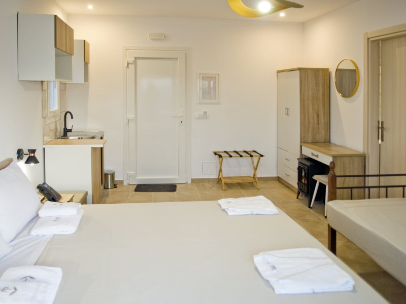 The design of the hotel is based on an alternative creation with the main goal of living close to nature. Kandania Paradise is oriented in such a way to ensure as much free areas of green. This also allows significant distances among buildings, making the unstructured space outweigh the structured one, all for our guests' privacy.