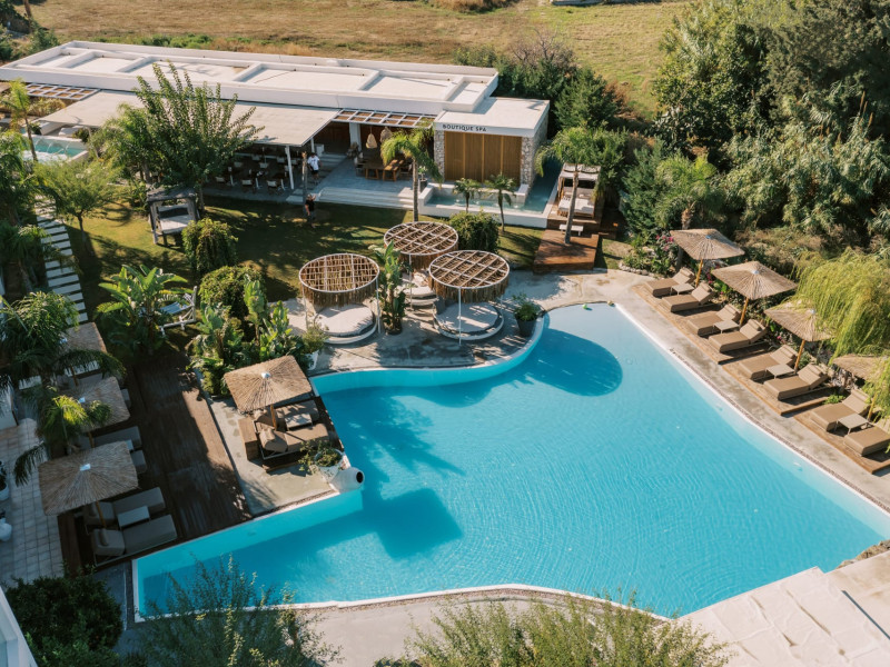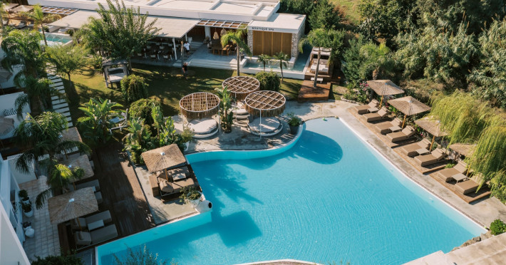 Kouros Exclusive Hotel Rhodes is located in the lively area of Faliraki, just 100 meters from the sandy beach of Kathara. It features a large freshwater swimming pool surrounded by beautiful gardens and sunbeds. During the day, you may enjoy your freshly squeezed juice, your cocktails or a snack from our pool bar.The hotel's rooms and suites are bright, fully air-conditioned, offering tea & coffee making facilities, mini-fridge laptop size safe box, free Wi-Fi access and many other amenities the modern traveller needs. All our suites also offer bathrobes and slippers.Breakfast is one of the hotel's highlights and you can have it outdoors! On our breakfast buffet, you will find classic international delicacies, but also local dishes, pies & products freshly prepared for you daily.Do not forget to try our Greek-Asian fusion cuisine a la carte restaurant TERRA Med while sipping your favourite cocktail! The menu has been designed by the award-winning famous Greek Chef Christoforos Peskias. If you take a short walk to the centre of Faliraki, you will find a great variety of shops, nightclubs, bars and restaurants. The Medieval Town of Rhodes is approximately 15 km away and Diagoras International Airport is 18 km away.