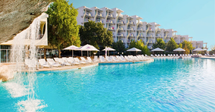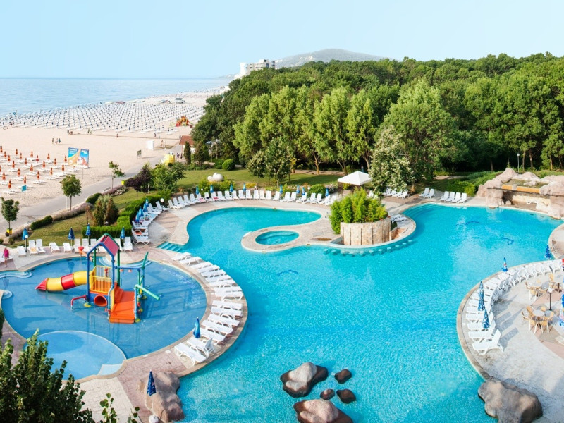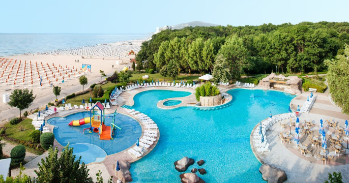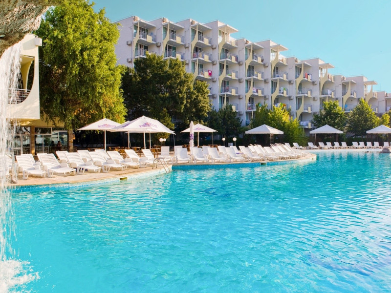 Hotelul Laguna Beach este situat in partea centrala a zonei Albena, care este populara si cautata pentru natura sa. Este situat pe promenada care desparte hotelul de plaja cu nisip. In apropierea hotelului veti gasi o multime de optiuni de divertisment pentru copii si adulti, exista magazine, restaurante, baruri, atractii pentru copii. Hotelul apartine complexului hotelier Laguna Mare, Laguna Garden si Laguna Beach si ofera servicii All Inclusive la un nivel foarte bun. Trenul turistic local poate fi folosit pentru transportul prin zona. La o distanta de 800 de metri de complex se afla un parc acvatic local.