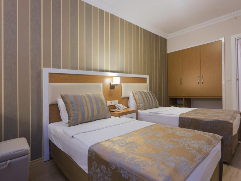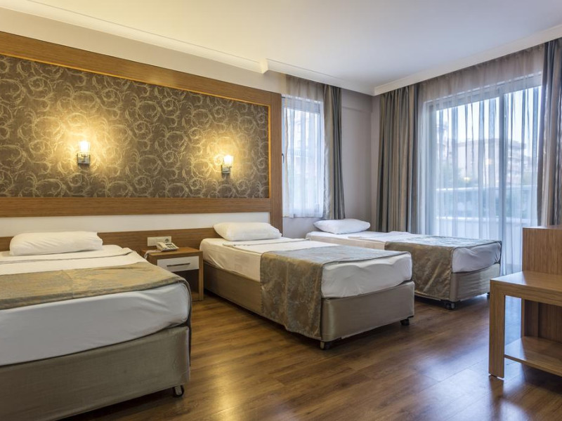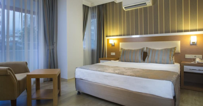 Hotelul este situat in statiunea Alanya, la 120 km de aeroportul din Antalya si la 100 m de faimoasa plaja Cleopatra. Castelul istoric din Antalya si pestera Damlatas se afla la 1 km distanta de hotel. Restaurantul principal serveste preparate internationale in stil bufet si barul hotelul serveste o selectie de bauturi racoritoare. Piscina exterioara este dotata cu sezlonguri si umbrele de soare. Camerele sunt dotate modern cu aer conditionat, uscator de par, televizor si mini bar. Turistii pot face diferite activitati la hotel cum ar fi tenis de masa, biliard si darts.