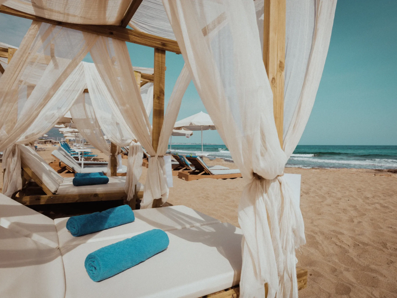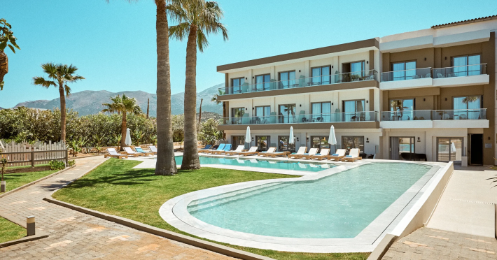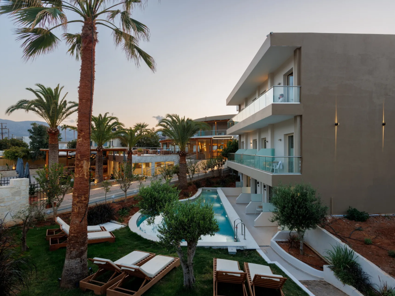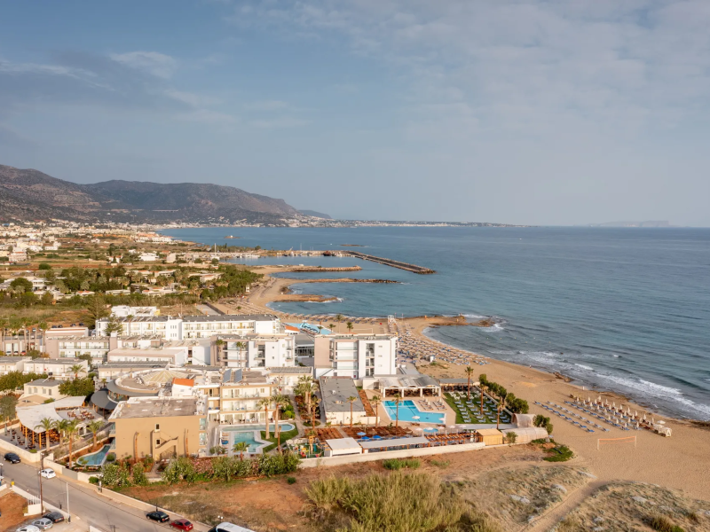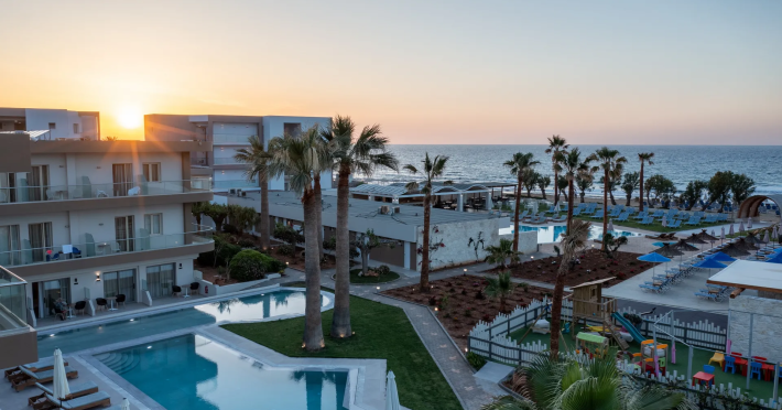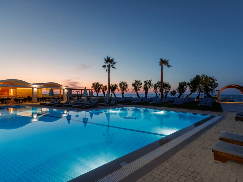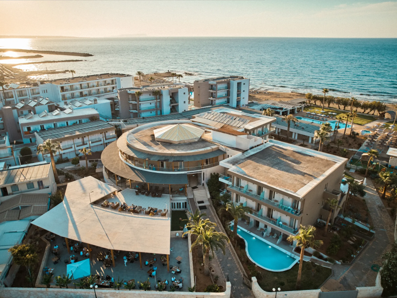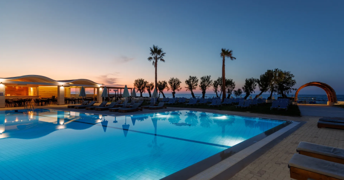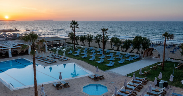 The Malia Bay Hotel sits on the northern coast of Crete in Potamos, a peaceful eastern suburb of Malia. Guests can step out onto a golden sandy beach right in front of the hotel. The all-inclusive hotel is just a stone’s throw away from the famous Minoan summer palace. Although it caters to families, the hotel is perfect for those looking to relax and unwind due to its serene location. The hotel’s lush gardens and the sparkling deep-blue sea are sure to please even the most discerning guests.