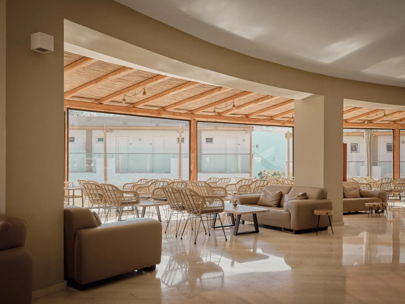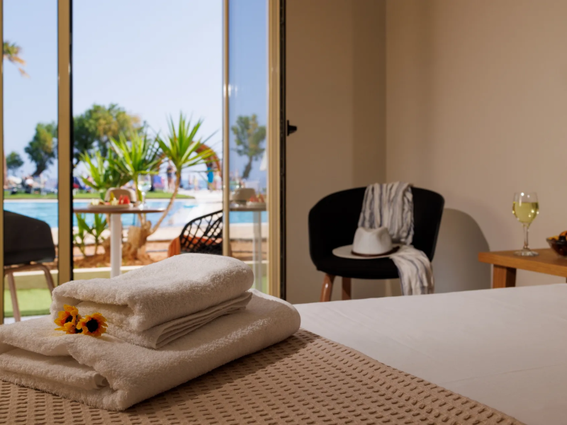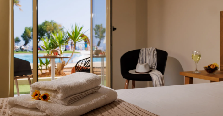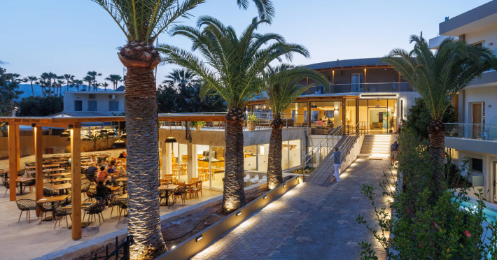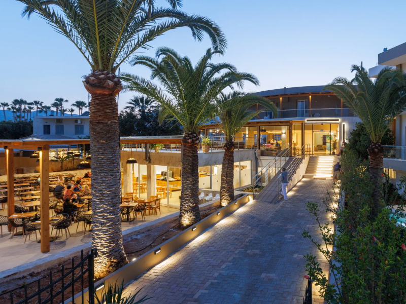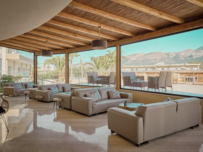 The Malia Bay Hotel was constructed in the 1980s as a resort, facing Malia Bay and adjacent to the Minoan summer palace. The twin bees, a well-known artifact excavated from the palace, inspired the hotel’s logo. The hotel has undergone several expansions and renovations over the years, with the most recent being the winter 2022 renovation. As a result of this, all rooms have had their services refreshed, superior rooms were completely renovated, and many common areas were redesigned and upgraded to provide the best possible service to guests. The hotel offers several accommodation option to choose from. Guests can combine the view from a terrace or balcony with the setup of the room, enjoy a view to the rich Mediterranean gardens or to the shimmering Cretan sea and choose the room type that suits their needs. The hotel consists of 178 rooms spread over different floors and buildings, separated into 2 room types, standard and superior, and each type is distinguished by its view and a Junior Suite with Sea View. Furthermore, a restaurant with interior and exterior parts and 2 bars, the lobby bar and the pool bar. A receptionist will always be available to welcome and help guests during their accommodation, as the department is 24h available. Moreover, a business office where guests can print/scan anything needed is available by reception. Finally, a specially modified area for meeting up to 50 pax is available for free.