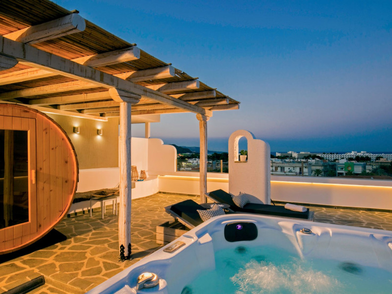 Situated in a quiet location, within 200 m of the centre of Faliraki, Malibu Boutique Studios offers self-catering rooms with balcony, and a swimming pool with sun terrace. The nearest beach is 500 m away.All Guests are welcome to enjoy daily breakfast free of charge The air-conditioned rooms of Malibu are modernly decorated with bright colors. They all include a kitchenette, where guests can prepare their own meals. Safety boxes are available free of charge. A roof garden with a hot tub and sauna is available. Sun loungers and umbrellas can be found around the pool, as well as in the olive-tree garden of the hotel. The pool bar serves snacks and refreshing drinks throughout the day.It also features a satellite TV and a billiards table.The nearest mini market is 50 m away. Rhodes Airport is 16 km away from Malibu Studios. The scenic Medieval town of Rhodes is within a 15-minute drive. Free private parking is available on site and free Wi-Fi is provided in all areas.