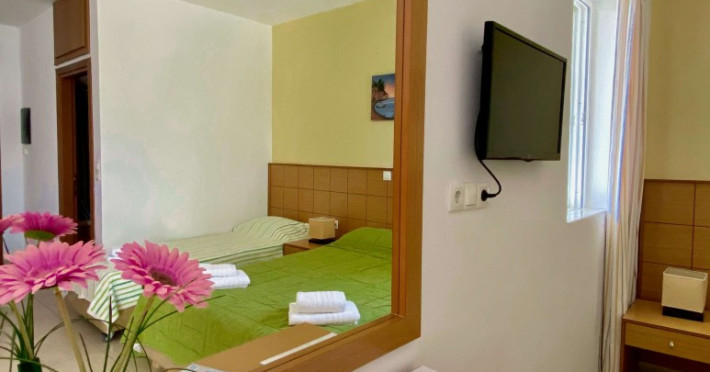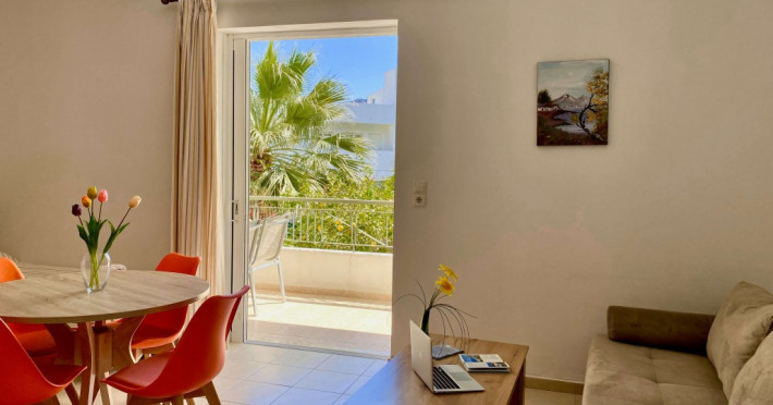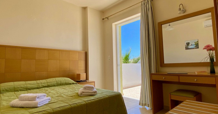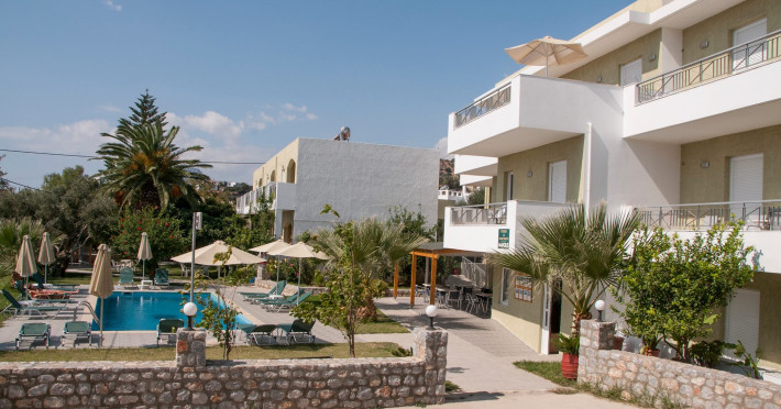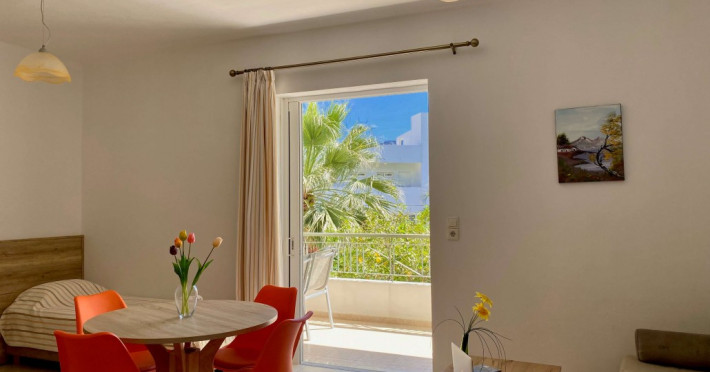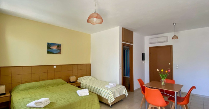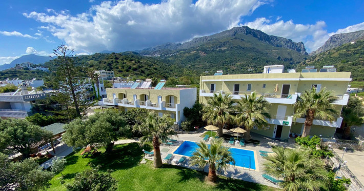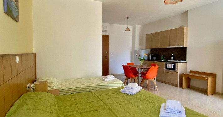 Our apartments and studios offer a cosy, fresh, fully-equipped environment, combined with an amazing pool, big balconies with view to a beautiful flower’s garden and the pool, that can become an ideal solution for quiet and relaxing holidays away from the noise of the city and a guaranty for unforgettable holidays.In just only 100 meters from the apartments, our guests can enjoy their swimming in the amazing long sandy beach of Plakias, and in about 5 minutes driving time they have access to other beautiful beaches like Amoudi beach, Amoudaki beach, Souda beach, Skinaria beach and the famous Preveli palm beach.