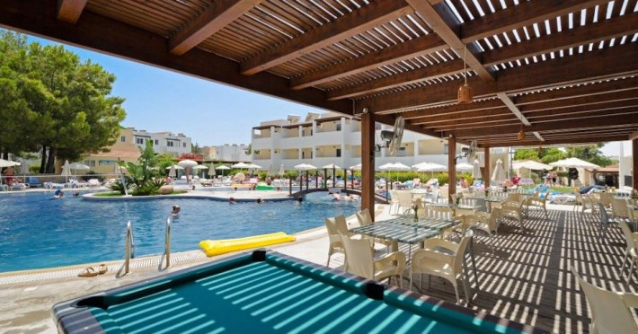 Situated just 50 metres from Pefkos main beach, the Matina Pefkos Aparthotel is the perfect location for a relaxing yet unforgettable self-catering holiday. The peaceful location, the friendly, fun atmosphere and the variety of facilities appeal to all types of guests, from families to couples and everything in between. Bars and Restaurant People Snack - Cocktail Bar. Serving snacks from 8:30am through until late. Relax in our comfy seating areas and enjoy good music throughout the day and into the evening. As the evening draws in, enjoy our cocktails and a sophisticated atmosphere with finely selected background music. Indulge yourself with one of our desserts, smoothies or ice creams from our unique menu. All in all, the ideal bar to make your holiday unforgettable.Matina's Family Pool Bar. Opens at 8.30am and has a sandwich bar throughout the daytime into the evening. You make your sandwich from a selection of our fresh breads, and choose your favourite fillings. Our staff ensure you are making the most of your time with us by entertaining you with music and all sporting events. Enjoy our karaoke and pool parties at Matina’s Pool Bar. It is the perfect family bar with something to offer everybody, especially as it is close by to our children’s play area.Meltemi a la Carte Restaurant. Enjoy an extensive al a carte menu at our on-site restaurant, Meltemi. Serving food from 5pm onwards daily, we are sure to suit all diets and preferences. Our traditional home-made Greek cuisine is delicious, unique and unbeatable. Treat yourself with a bottle of wine, from our carefully thought out wine list and make the most of our restaurant and its romantic atmosphere. We have a menu catering for everybody, whether you are dining as a couple, a group or a family we are sure you will find a meal to suit you. Our impressive dessert menu is hard to resist to finish off you meal. As a guest at our hotel, you will receive complimentary discount every time you enjoy a meal with us at Meltemi.Matina’s Pirates Kids Club Open 6 days a week, our children’s club ran by our in-resort team has something for each of your little ones. From ages 3-11, daily activities run throughout the day and into the evening including team sports, creative playing with learning and party nights.