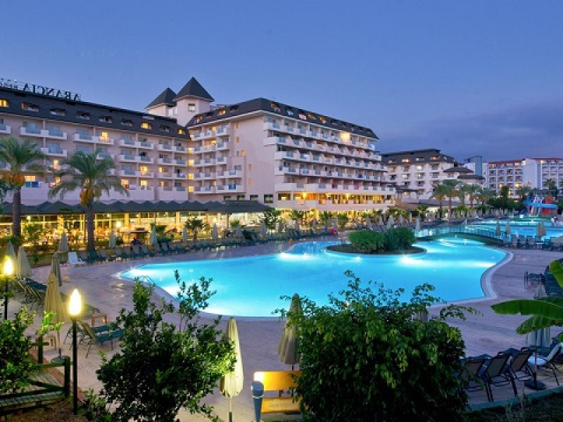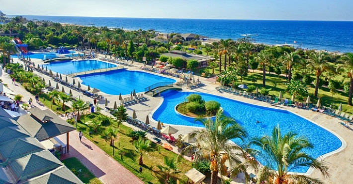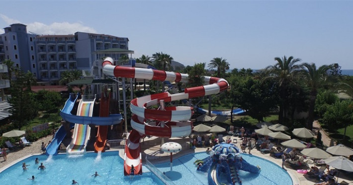 Hotelul este localizat in statiunea Alanya, la 110 km de aeroportul din Antalya si la 12 km de orasul Alanya. Localizare Hotelul este localizat in statiunea Alanya, la 110 km de aeroportul din Antalya si la 12 km de orasul Alanya. Facilitati hotel Restaurante: Restaurant principal, 2 restaurante a la carte cu specific otoman si pescaresc. Plaja si piscine: Plaja este in imediata apropiere a hotelului, la 150 metrii, si este o plaja cu nisip dotata cu un bar pe plaja. 3 piscine exterioare, piscina interioara, 5 topogane, Copii au acces la o piscina exterioara, 3 topogane acvatice. Sporturi:: loc de joaca, mini-club, darts, volleyball, tenis de masa, basketball, Activități de animație: Jocuri Zilnice, Activități Sportive, Spectacole Nocturne Profesionale. Noaptea Turcească. Karaoke Altele: cinema, cabinet medical, coafor, lant de magazine, spalatorie, sali de conferinta Facilitati camera Deschis in 2006, acest hotel ofera cazare in cladirea principala de 7 nivele. Camerele sunt dotate standard cu: baie, uscator de par, aer conditionat, televizor, telefon, minibar.