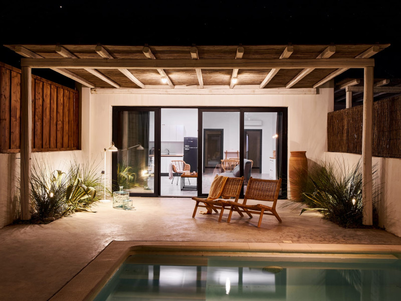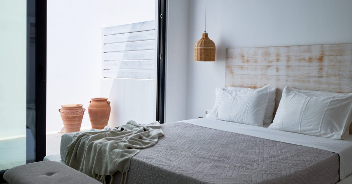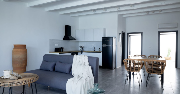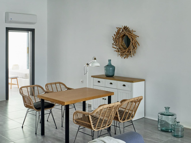 Overlooking the Aegean Sea Villa Esthir and Villa Theros offer the same taste of elegance and style, while each house maintains an individual ambiance depending on its different decorating touches.All bedrooms contain luxury items such as of fine linen, towels, and natural bath amenities.