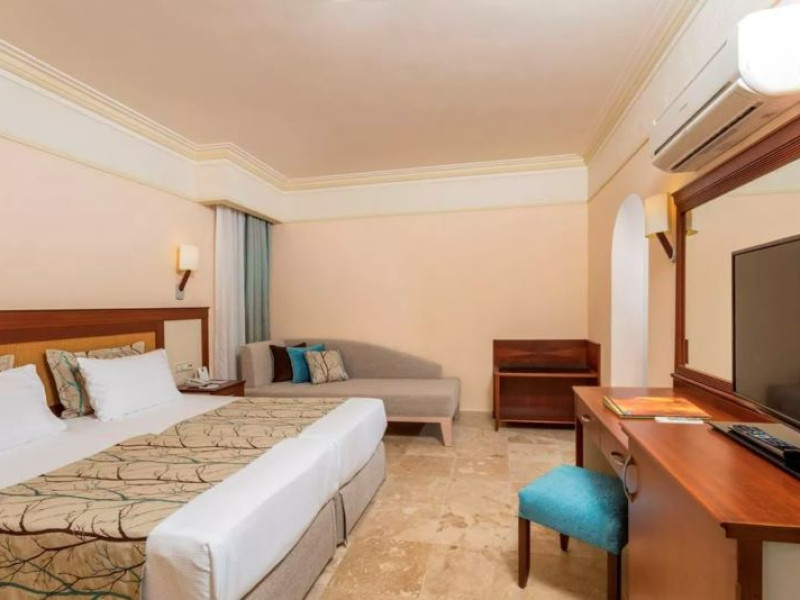 Hotelul oferă un restaurant principal, două restaurante a la carte, trei baruri, două piscine exterioare și un aquapark cu tobogane (funcțional între 15.05 și 15.10). Alte facilități includ o sală TV, cabinet medical (cu program de două ore pe zi, cu excepția zilei de duminică), coafor în cadrul Melas Resort, trei magazine, servicii de spălătorie, schimb valutar, rent-a-car, parcare și Wi-Fi gratuit la recepție. Activitățile gratuite includ baie turcească, saună, fitness, aerobic, aqua-aerobic, squash, volei de plajă, baschet, mini-fotbal, biliard, tenis de masă, darts, închiriere rachete și mingi de tenis, wind surfing (cu licență), sporturi acvatice fără motor pe plajă, Wi-Fi, programe de animație și acces la discotecă (în Melas Resort până la 02:00). Serviciile contra cost includ masaj, peeling, internet-cafe, salon de jocuri, nocturna terenului de tenis și sporturi acvatice cu motor pe plajă. Facilitățile pentru copii includ un bufet, două piscine, loc de joacă, tobogan, mini-club (4-12 ani), junior-club (13-16 ani) și servicii de baby-sitter (contra cost).