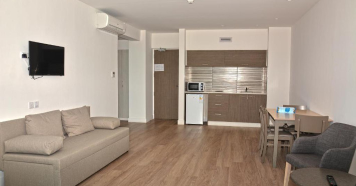 Melini Hotel Apartments se află la 11 km de animata Ayia Napa și la doar 2 km de plaja Sunrise. Orașul Larnaca se află la 53 km, iar Aeroportul Internațional Larnaca este la 68 km. Wi-Fi gratuit este disponibil in zonele publice, iar parcarea privată este gratuită.