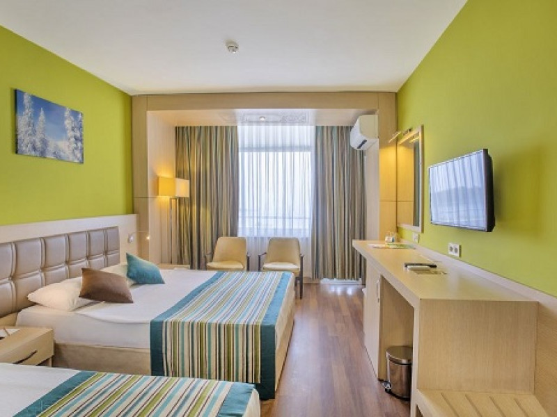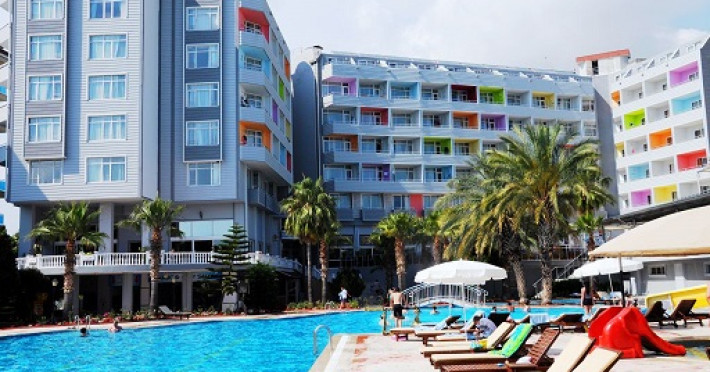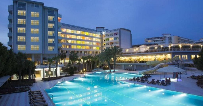Hotelul este localizat in statiunea Alanya, la 90 km de aeroportul din Antalya si la 30 km de orasul Side. Pozitionat la malul marii, acest hotel ofera turistilor acces la o plaja privata cu nisip. Hotelul are de asemenea piscina exterioara cu topogane si dotata cu umbrele si sezlonguri. Copii se pot bucura si ei de piscina exterioara, topogane si de un mini-club. Camerele hotelul sunt dotate standard cu aer conditionat, televizor si minibar. Alte activitati disponibile pentru turisti sunt biliard, tenis de masa, aerobic si bowling.