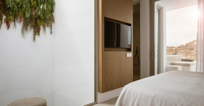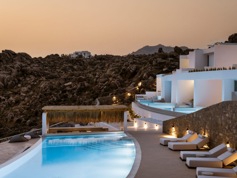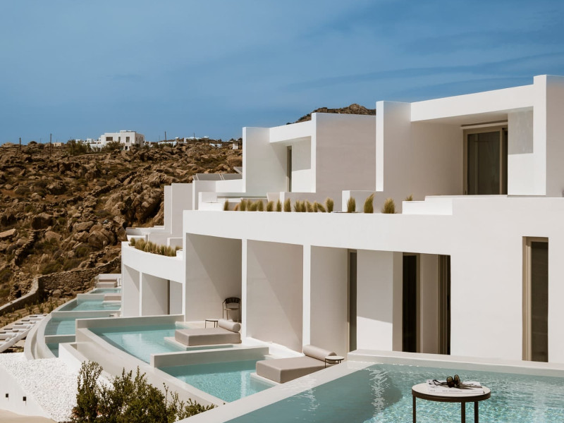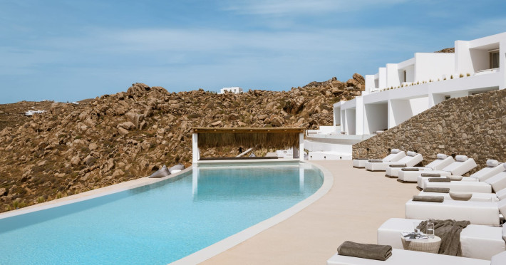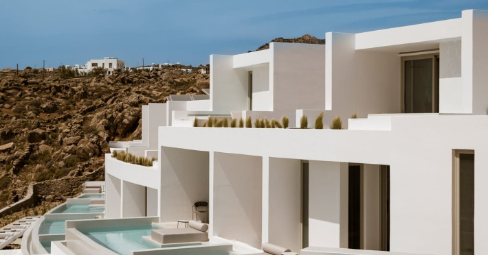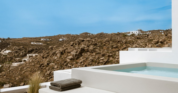 Located on the iconic Super Paradise Beach, Mykonos Flow is a brand-new 5*, adults-only retreat, designed with minimal aesthetics and soothing earthy tones that blend harmoniously with the natural landscape.The hotel features 21 luxurious suites, each offering an outdoor jetted tub or a private pool, creating the perfect setting for relaxation. The suites enjoy side or direct views of the Aegean Sea, ensuring a serene and unforgettable stay. Designed exclusively for adults, Mykonos Flow is ideal for couples or groups of friends seeking both tranquility and easy access to the vibrant, cosmopolitan lifestyle of Mykonos.After a day exploring the island, guests can unwind at the Spa, indulging in treatments with bespoke products and premium amenities. The Spa experience is complemented by a hammam and an indoor jetted tub, offering total rejuvenation. For those who wish to stay active, a fully equipped gym is available on site.Complete your day at our all-day restaurant, savoring refined Mediterranean flavors, or relax by the pool with a signature cocktail, as the sun sets over the Aegean.