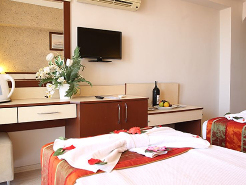 Mysesa Hotels Incekum este o fermecătoare proprietate de 4 stele, renumită pentru rafinamentul și eleganța sa. Cu o amplasare ideală, la doar 100 de metri distanță de apele cristaline ale mării, hotelul se bucură de o plajă spectaculoasă cu nisip fin. Această oază de relaxare oferă o gamă largă de facilități pentru a satisface cele mai exigente gusturi și pentru a crea amintiri de neuitat pentru oaspeții săi. De la servicii de ospitalitate de înaltă calitate la opțiuni de divertisment și relaxare, Mysesa Hotels Incekum se angajează să ofere o experiență de neegalat pentru fiecare vizitator.