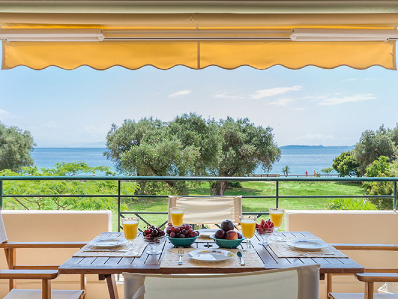 These stunning, beachfront apartments are located only 10 meters from the Blue Flag awarded beach of Barbati. Each apartment can accommodate a party of 5 guests and promises relaxing vacations in the garden area and amazing moments by the sea.