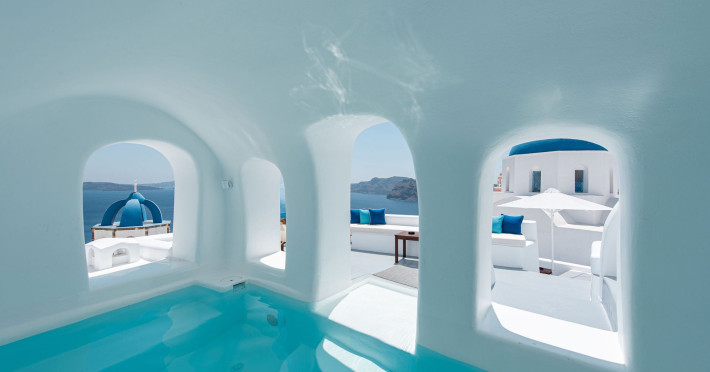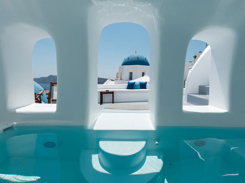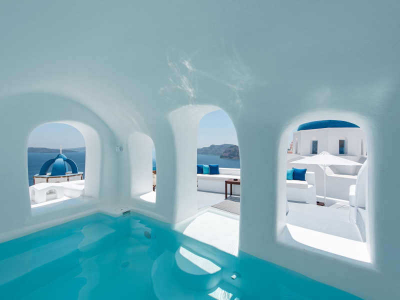 Located at the very heart of Oia, nesting in a secluded position on the picturesque caldera cliffs of Santorini, Oia Spirit Boutique Residences is a stylish complex of 8 stand-alone traditional cave houses & a cave pool. Right out of a post card between the two iconic blue domes of Oia, Oia Spirit Boutique Residences promises to become your own little home place in Santorini.Santorini International Airport is about 17 km from Oia Spirit Boutique Residences, and the Ferry Port at approximately 23 km.For safety reasons, children below 16 years old are not allowed at the property.