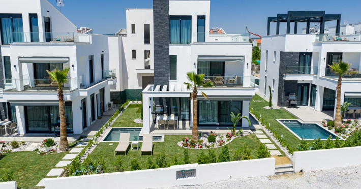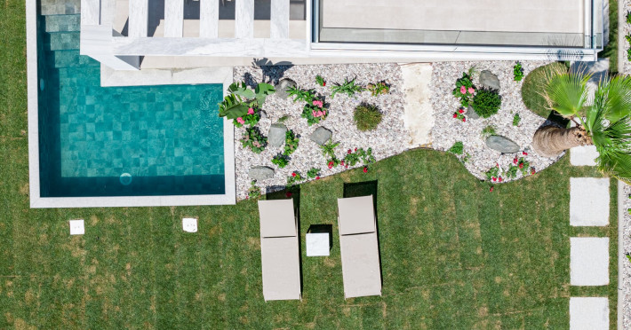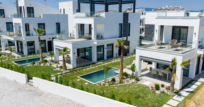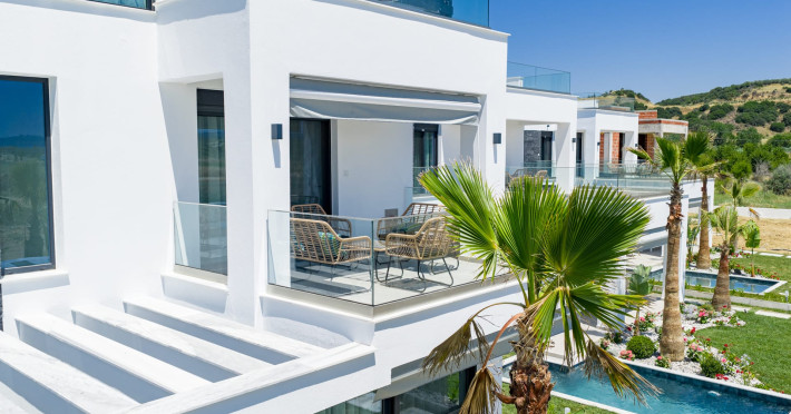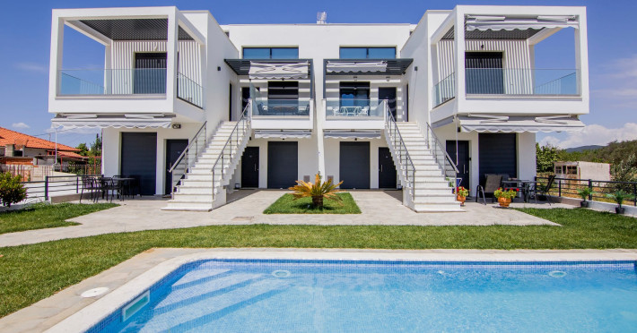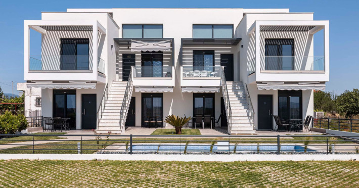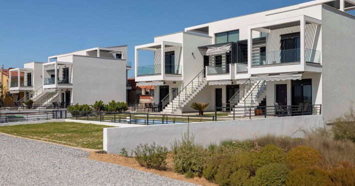 Private detached villas with three and four bedrooms with large living spaces and roof tops overlooking the endless blue, ideal for Sunset gatherings and for those looking for exclusive summer holidays.