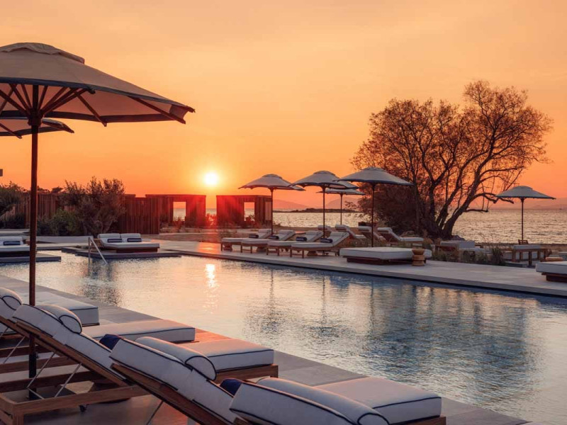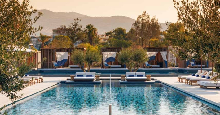 One&Only Aesthesis is a captivating coastal hideaway that harks back to the golden days of the Athenian Riviera. Set within 21 hectares of protected forest reserve in Glyfada, the resort is just a short drive from the ancient wonders of the Greek capital.