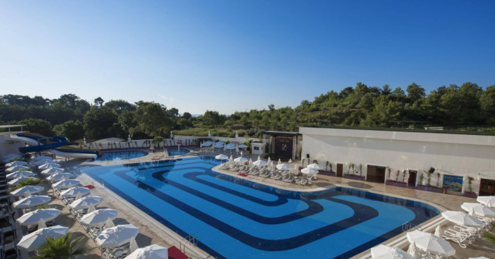 Hotelul dispune de plaja privata la 500 m distanta si ofera transfer pana la plaja cu shuttle gratuit, piscina exterioara pentru adulti, piscina exterioara pentru copii, mic Aqua Park deschis intre orele 10.30 - 12.00 si 14.30 - 16.30. Piscina pentru copii exterioara este special amenajata pentru siguranta celor mici si are o adancime de 35 cm.