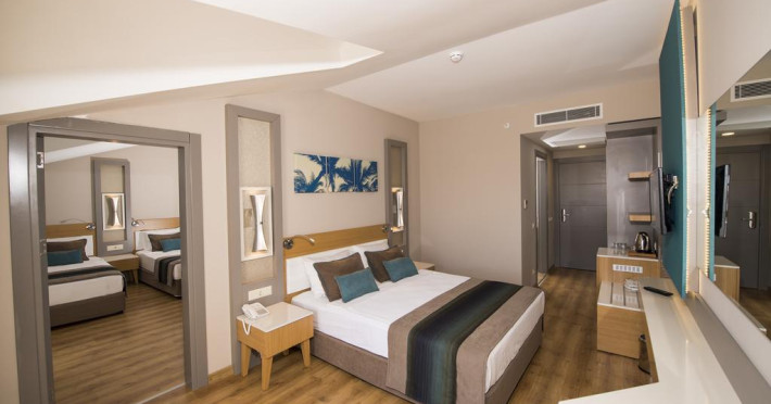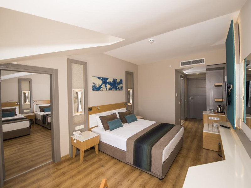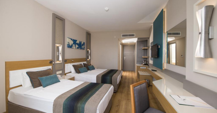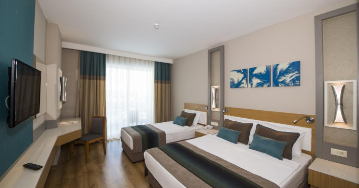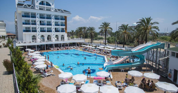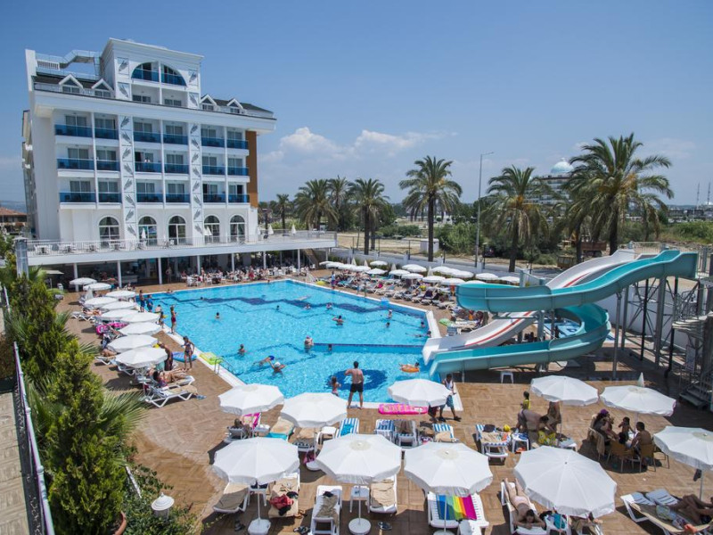 Construit in anul 2015, suprafata totala este de 6000 m2. Hotelul are o cladire cu 4 nivele. Complexul Palm World Side Resort & SPA din Side ofera plaja privata, o piscina in aer liber si o piscina interioara.