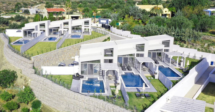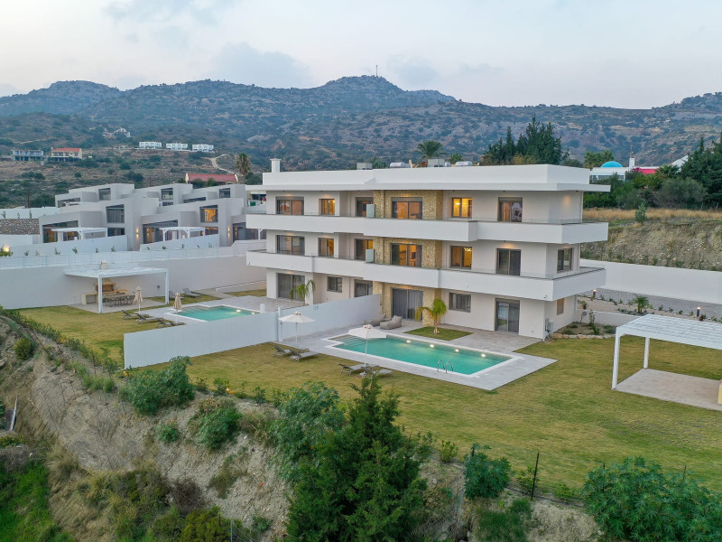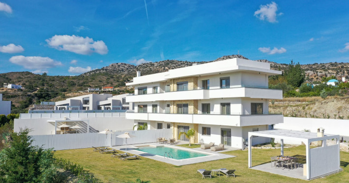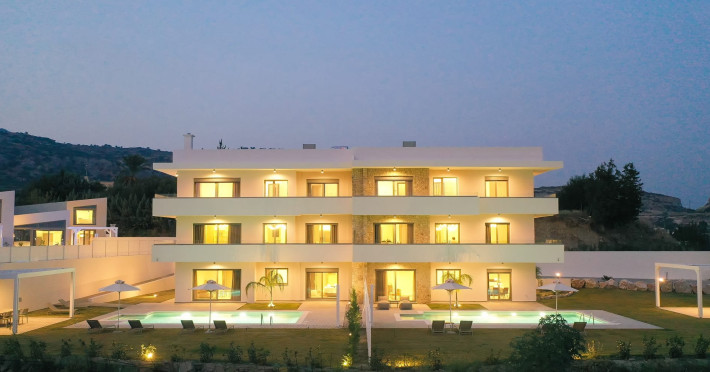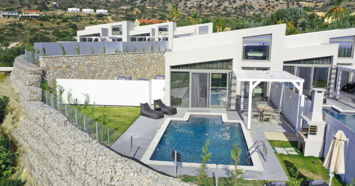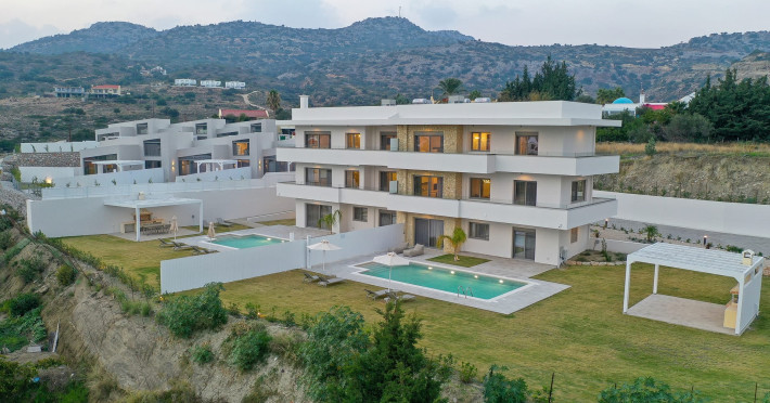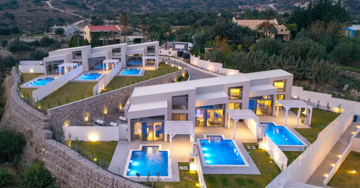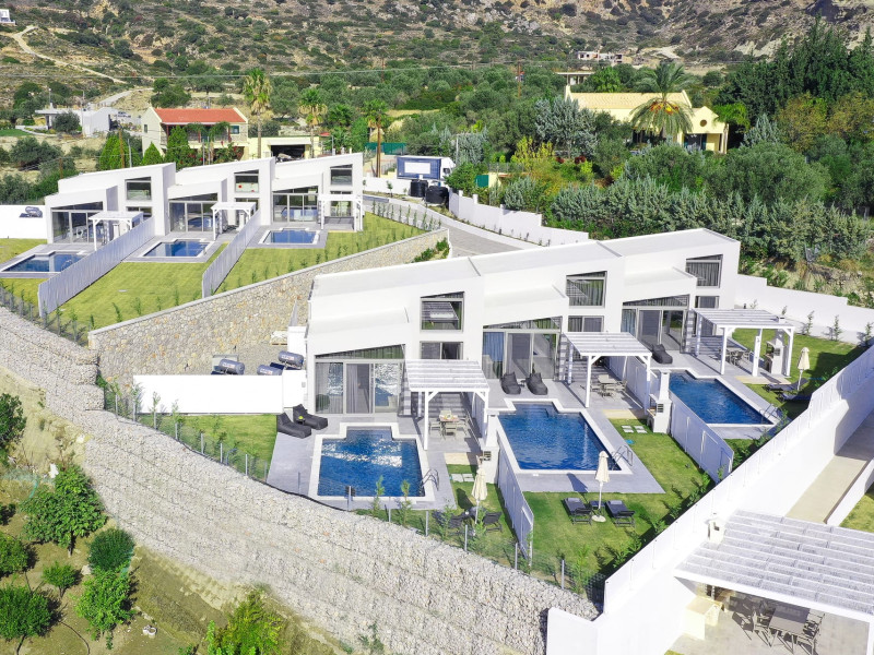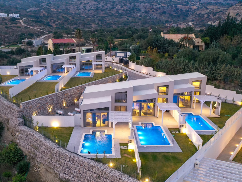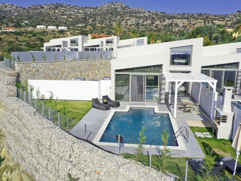 Welcome to Pantheon Villas, the ultimate luxury retreat on the stunning island of Rhodes. Nestled in the picturesque area of Afandou, this newly built complex spans six acres of serene landscape, offering an exclusive escape where comfort, style, and privacy blend seamlessly.Each of the eight exquisite villas is thoughtfully designed to provide a harmonious balance of modern elegance and homely warmth. Featuring private eco-friendly swimming pools, lush gardens, and breathtaking natural surroundings, Pantheon Villas create the perfect setting for a truly relaxing stay.The contemporary architecture and smart design of each villa ensure a welcoming atmosphere. Whether unwinding by the pool, exploring the beauty of Rhodes, or simply enjoying the peaceful ambiance, every moment here is designed for pure enjoyment.A stay at Pantheon Villas promises a rejuvenating experience, leaving you with unforgettable memories and a desire to return.Useful Information for Your Stay:-Housekeeping service is available only upon request and is subject to an additional charge:• Small villas (110 m²): €100–160• Large villas (275 m²): €120–200*Kindly note that if additional time is required depending on the condition of the villa, an extra cleaning fee may apply.-The pools are not heated.-Private Chef Services: Available upon request.-Grocery Shopping: We can assist with shopping based on your list.-Afandou Beach: 1.6 kilometers away.-Supermarket: 1.4 kilometers away.-Private Parking: Available on-site.