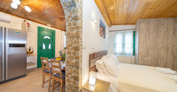 Nestled in the heart of the lush, unspoiled landscape of northern Kefalonia, Paola Apartment Fiskardo is a cozy and romantic hideaway designed for two. Located within the same charming complex as our popular Lori Apartment, Paola offers a tranquil escape just minutes away from the picturesque port of Fiskardo and the stunning Alaties Beach – one of the island’s best-kept secrets. This intimate one-bedroom apartment is perfect for couples or solo travelers seeking relaxation, nature, and convenience. It features a bright and airy bedroom, a modern bathroom, and a comfortable living space that opens to a private outdoor area, ideal for enjoying morning coffee or evening wine in the calm of nature. Surrounded by olive trees, pine forests, and the sounds of the Ionian breeze, Paola Apartment invites you to slow down and savor the simplicity of island life. Despite its serene atmosphere, the property is only a short distance from local restaurants, cafés, and markets, making it easy to enjoy the tastes and culture of Kefalonia without venturing far. The famous harbor of Fiskardo, known for its colorful Venetian buildings, seaside tavernas, and boutique shops, is just a stone’s throw away. Spend your days wandering the cobbled streets, swimming in turquoise coves, or enjoying fresh seafood by the sea. And when it’s time to retreat, return to the peaceful comfort of your apartment surrounded by nature. Whether you’re planning a romantic getaway, a honeymoon escape, or simply a quiet break on this enchanting island, Paola Apartment Fiskardo, managed by Ionian Reserve, offers a warm and welcoming home base where timeless Kefalonian beauty meets comfort and charm.