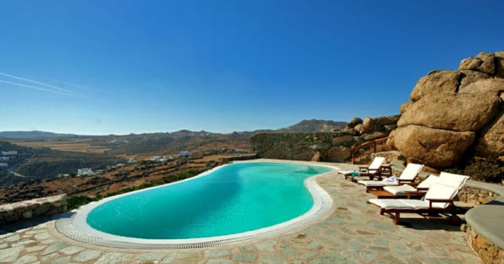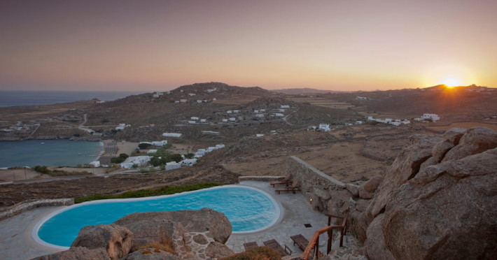Soak up the Mykonian summer by choosing Paradise Villas Mykonos as your getaway.Situated in the heart of the famous Super Paradise Beach, lies idyllic the private complex of Paradise Villas, comprising three villas.The properties are semi-detached from one another, each has its own private pool, private outdoor setting and entrance. All have been outfitted with comfortable materials and designed in typical Cycladic and traditional architecture.Villa Super One celebrates Mykonian architecture of white elements and traditional stone, which have been meticulously worked on whereas the outdoor area with the huge rock formations creates stunning scenery.Rethink relaxation as the villa offers a private pool, naturally sheltered by gigantic rocks. The outdoor dining area is equally welcoming with an elegant dining table, a large bar, a built-in BBQ and a state of the art sound system. Its position, just a few steps away from the pool and the villa’s kitchen, allows accommodating friendly get together as well as more formal dinners, in a natural atmosphere created by the stone-built walls and the enormous surrounding rocks.Villa’s Super One interiors unfold in two levels, following the atmosphere of relaxation.The upper level features a fully equipped modern, open plan kitchen along with the main dining room, where guests can relish the island’s mouthwatering culinary delights. The comfortable living room, also in the upper level, creates a cosy atmosphere and the thing that makes the most lasting impression on the visitors is the fabulous view of the infinite blue.The lower lever hosts Villa’s Super One five bedrooms. Each bedroom complements the relaxed ambiance with its elegant furnishing and has two twin beds or a double bed, a spacious en-suite bathroom, and direct access to the terrace.The architecture of Villa SuperOne is in full harmony with the Mykonian style, while the private pool by the villa dominates the space. The outdoor terrace built around the pool combines white elements, local stone and wood with the traditional teak furnished pergola, reflecting the Mykonos way of life. Nowhere is more inviting than the outdoor sitting area, the Barbecue, the mini bar with the sound system and the stone built lounge area which set the ideal scenery for guests to relish and relax from early morning until late at night, overlooking the sapphire blue sea.Villa’s Super Two interior is specially designed in order to keep the bedrooms separated from the living areas. The entrance level consists of an ergonomically designed kitchen and a spacious living room. The decoration and furnishing are a combination of minimal and traditional Cycladic style, with stone built sitting areas and wooden elements. The lower level hosts the three bedrooms of the villa. Each bedroom is equipped with all the modern amenities, including an en-suite bathroom, air-conditioning, TV set and access to the terrace through the staircase that leads to the pool.Villa’s Super Three bedrooms are situated on the lower floor and feature en-suite bathrooms and modern furnishing combined with all the necessary comforts. The entrance level consists of the living room, the lounge and the dining area, decorated with a combination of minimal and traditional Cycladic style, with stone built sitting areas and wooden elements. All the living areas of the entrance level have access to the terrace.The villa features an external space with a BBQ, a bar with a sound system and a traditional pergola inviting guests to enjoy the island’s appetizing culinary delights all day long. The private pool, accessible either from the separate bedrooms or from the staircase that leads to it, embraces the spirit of Mykonos summer life.The Shepherd's Cell harmoniously embraces the rocks that already existed and spreads in an area of 20 square meters approximately. It is equipped with a wardrobe, a TV and a safety box, while it also has a small bathroom with a shower.Outside the studio, a beautiful stone-paved courtyard under the large pergola ensures coolness and shade during the day. The visitors can enjoy the excellent view sitting on the sofa or having their meal in the open kitchen which has a sink, a small refrigerator, storage areas, a BBQ and an electric cooker. All the necessary equipment can be found on the kitchen counter (coffee maker, toaster cutlery etc). The Shepherd's Cell also has wi-fi internet and a stereo system.In front of the Shepherd's Cell there is a large built tub from which one can enjoy the view of the Super Paradise Beach. The Shepherd's Cell is located near Villa Zephyrus One and next to the swimming pool of Villa Zephyrus Two, but at the same time Is independent. It can be used as an exclusive space for two people but also can be the extra room that the tenants of any of the villas may require.Our on-site team will unlock Mykonos treasures and design a mesmerizing experience for your perfect villa getaway.Villa Clif Top in HoulakiaIf you are seeking a lifetime villa experience in Mykonos, which is reputed to be one of the most beautiful, cosmopolitan, and famous Greek islands, Mykonos Villa Clif Top invites you to make your holiday dreams come true. Mykonos Villa Clif Top is built atop the Hill of Houlakia, over the homonymous bay, facing West and covering avast private property.An oasis of tranquility reveals right before your very eyes, due to its dominant position.Overlooking Mykonos town, as well as the nearby islands of Delos, Rhenia, Syros, and Tinos, Mykonos Villa Clif Top offers its guests a picturesque view from dawn and as the sun goes down and the sea and sky are painted in shades of stunning colours, gaze at the tiny lights flickering as the night falls and you live the moment of your dreams.Whitewashed walls and traditional stone encapsulates the Cycladic spirit. The Villa’s spacious terrace entices you to enjoy the Greek sun and the Aegean breeze all day long.Think relaxation under the shadow of Ca