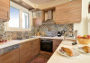 A spacious living and dining room is elegantly furnished and a cozy kitchen is fully equipped offering convenience.