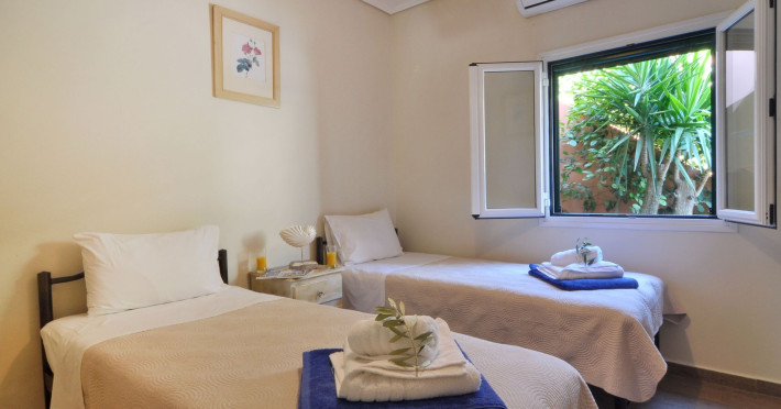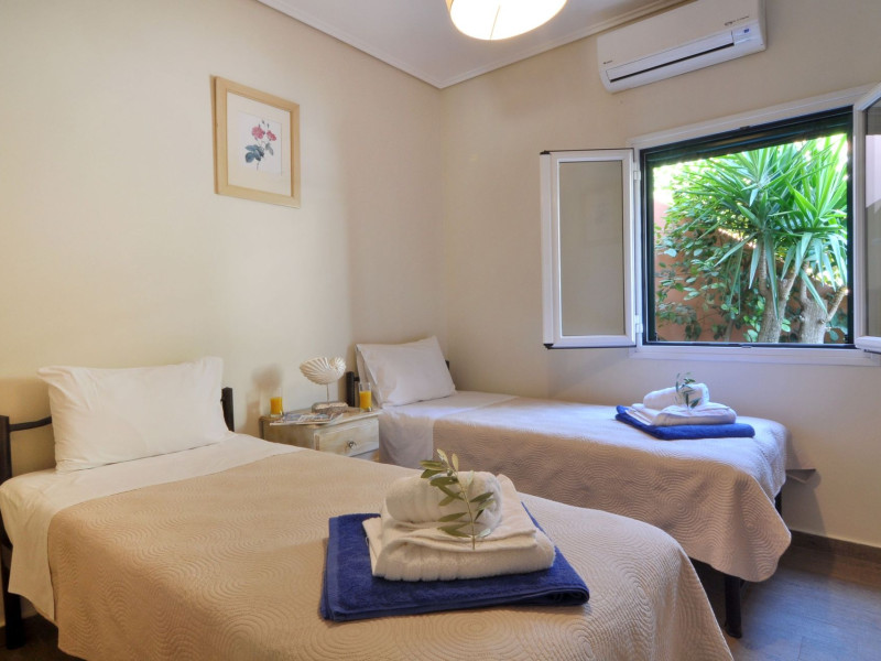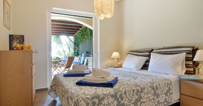 Chloe is a practically designed apartment, located just right next to the famous Barbati beach in Corfu. It is part of a luxury vacation development, occupying an area of 60m², with a garden of 165 m². This independent apartment comprises of two bright bedrooms with comfortable beds and a shower room.