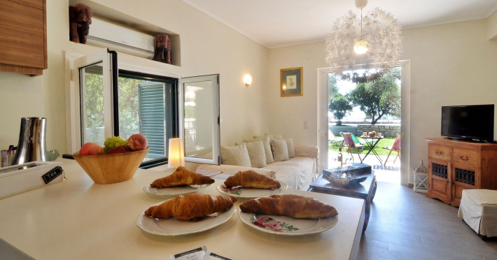 Chloe has its own spacious garden with aromatic flowers, surrounded by the corfiot perennial olive trees. It is undoubtedly the right place to reconnect to nature and relax under the soothing sound of the sea waves!