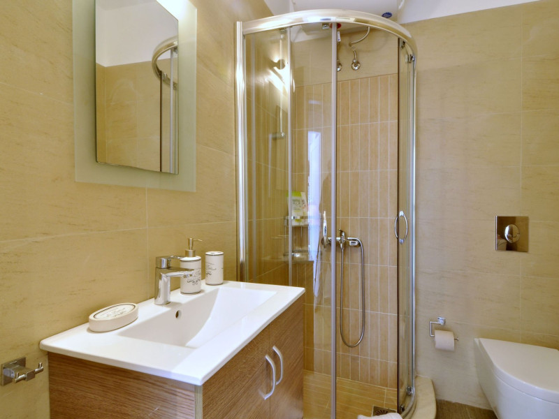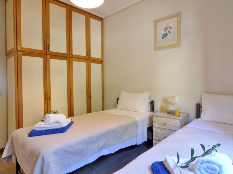 The ideal location of the apartment, right next to the sea, gives you the opportunity to enjoy the beach during the whole day; you can dive into the clear, blue, crystal sea water literally at any time, while having your children playing safely either in front of the house or in the swimming pool of the development.