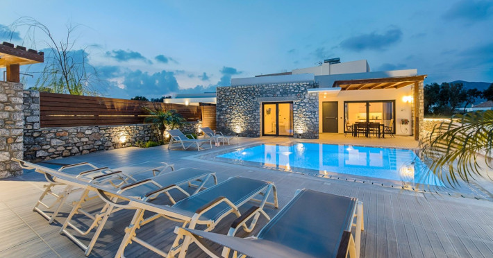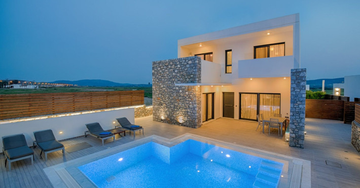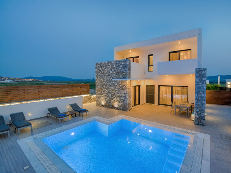 Prasonisi Villas are three detached luxury private villas, which are located in the most beautiful part of Rhodes, the unspoiled countryside of Prasonisi! Located only 5 minutes from the beach and just a few steps from the lovely traditional village of Kattavia, they offer a private swimming pool, secure parking, barbecue and luxurious rooms. These are eco-friendly villas, decorated with natural stone.Our luxury villas, Villa Romeo, Villa Juliette and Villa Panormitis, are closer than any other villa to the amazing and famous beach of Prasonisi! They are only 5 minutes far from this sandy paradise! Situated in the South of Rhodes, many of the loveliest Greek Villages are in the area such as Lachania, and Kattavia.Prasonisi Villas benefit from a peaceful, tranquil environment. Moreover, the beautiful beach of Apolakkia is just 3 minutes driving from the villas, and the sandy beach of Plimmiri 8 km away. For big groups or families, up to 18 people, there's the option to book both of two or three neighboring villas, depending on the availability.The beauty of the surrounding countryside and the proximity of Prasonisi beach make these villas a great environment for both groups of friends or families to enjoy a relaxing time together.