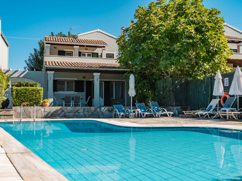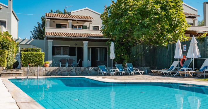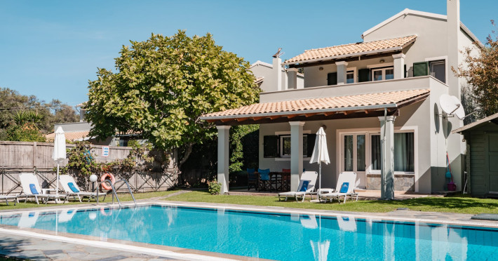Pyramid City Villa is a complex of triple two-story villas that can accommodate a total of 18 people and can be rented separately or together.Villa Venus ,Artemis and Ares are built in the style of a modern island cottage, stands out among the dense seaside vegetation, while each villa stands next to its two sister villas. This fine holiday accommodation is an ideal choice for a family with children or for groups/families of travelers who want to stay in nearby accommodations in Corfu.